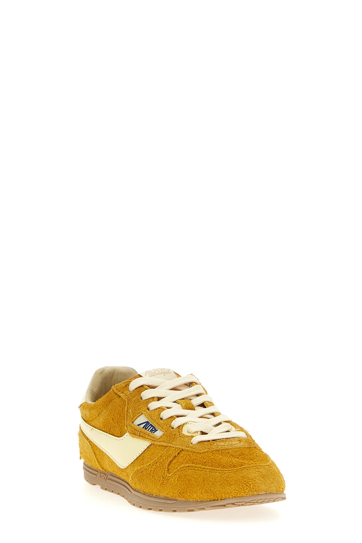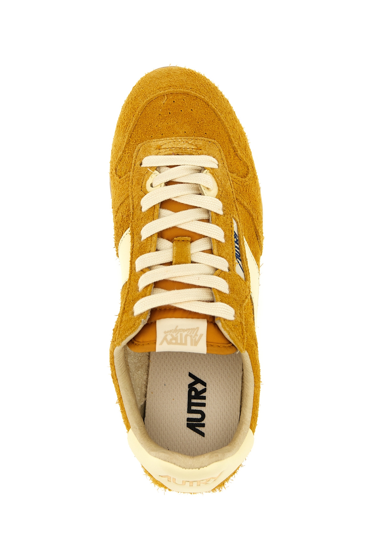 'Windspin' used-effect shaved suede sneakers with contrast leather details, slightly padded nylon tongue and jacquard logo patch, leather and cotton terry lining, mesh lined insole, ultra-flat rubber sole.