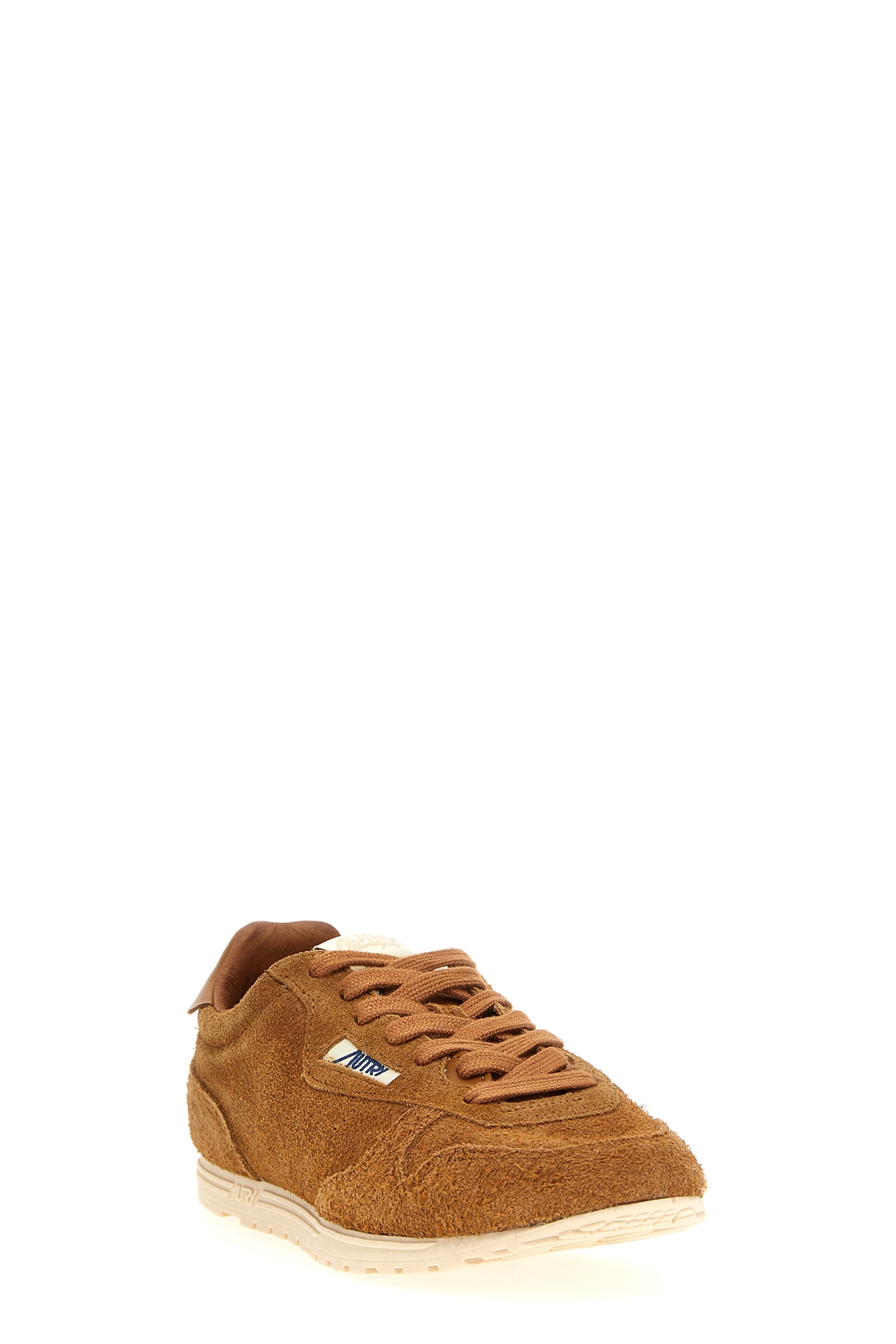 'Windspin' used-effect shaved suede sneakers with side perforations, leather heel with embossed logo, slightly padded nylon tongue and jacquard logo patch, leather and cotton terry lining, mesh lined insole, ultra-flat rubber sole.