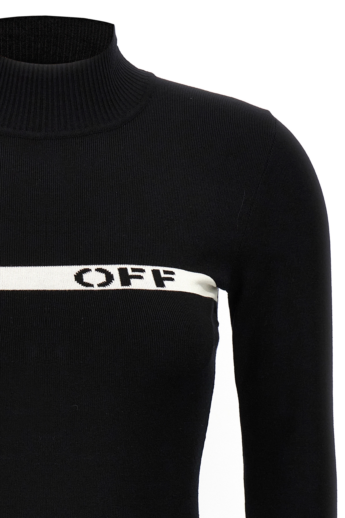 'Logo Stripe Mini' dress in viscose blend, logo intarsia, high neck, long sleeves with cuffs.
