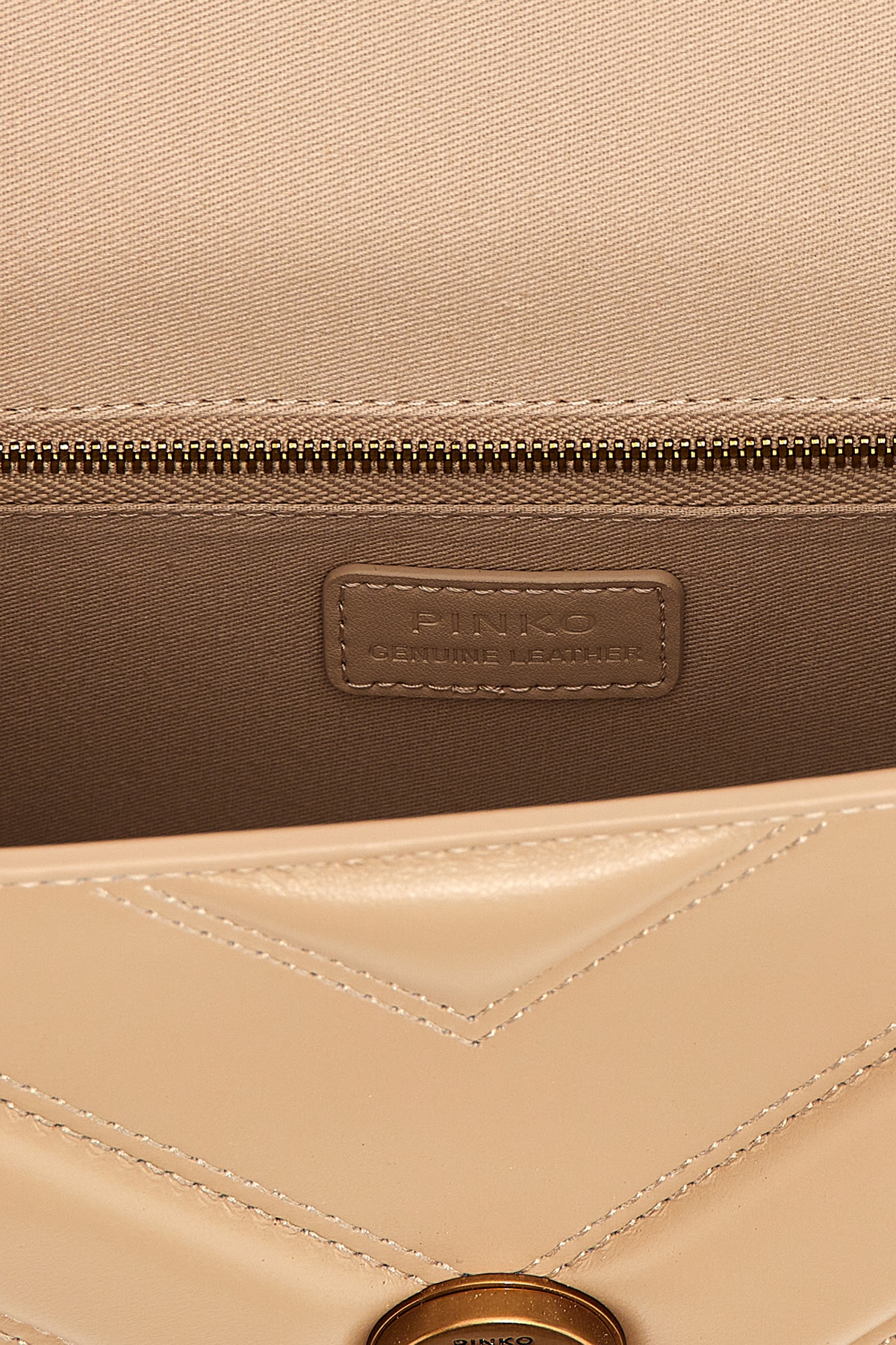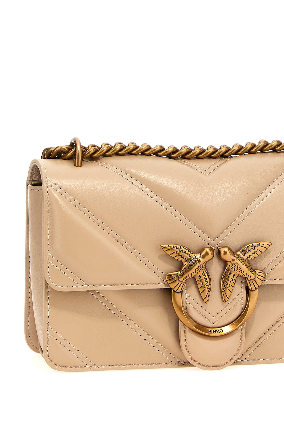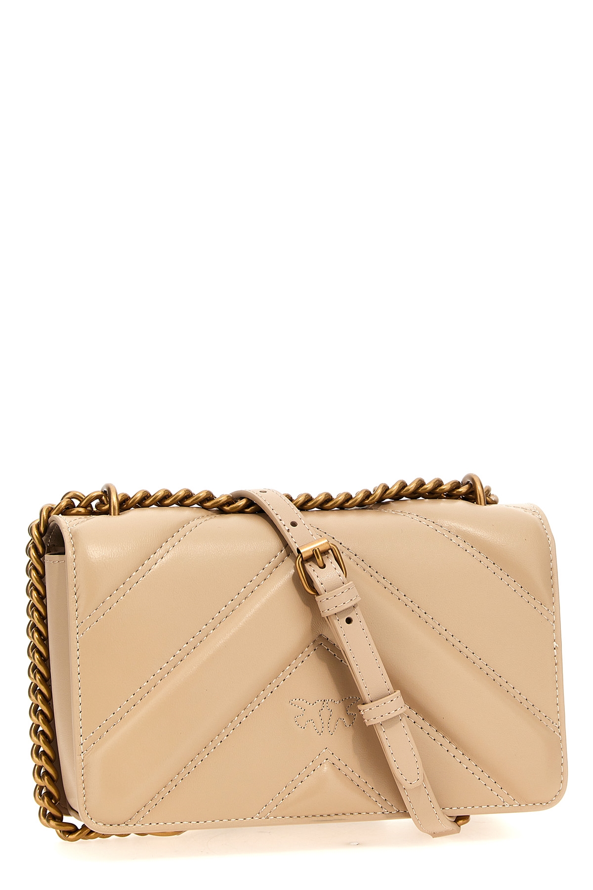 Love One Mini Light' nappa leather crossbody bag with embossed intarsia that creates a quilted effect with chevron design, magnetic flap closure with front metal logo applique, chain shoulder strap and sliding leather.