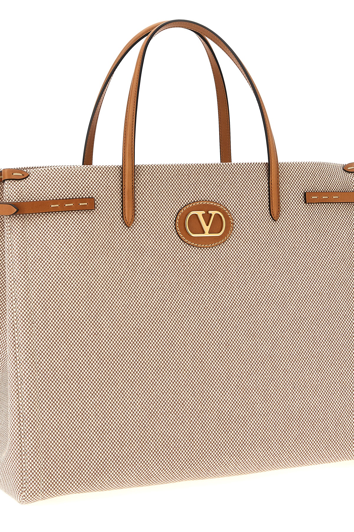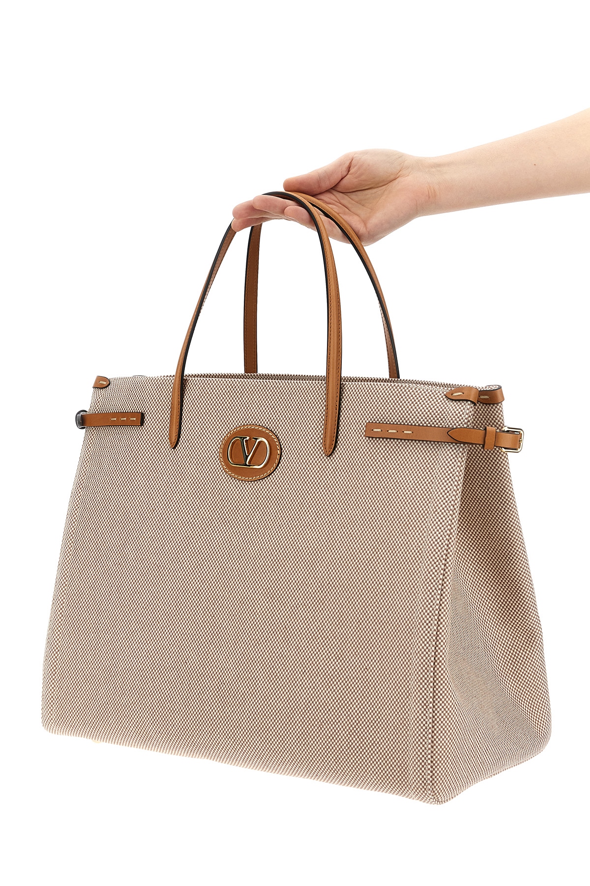 Valentino Garavani 'Antibes' large canvas shopping bag with leather details, leather patch with metal VLogo Signature on the front, double fixed handle, metal details, adjustable side straps, magnetic closure, adjustable and removable shoulder strap.