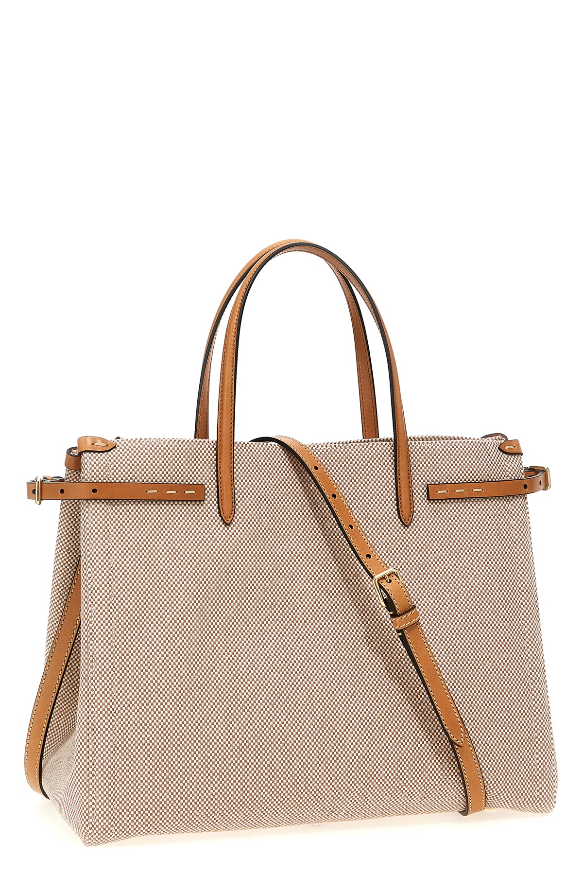 Medium 'Antibes' canvas shopping bag with leather details, leather patch with front metal VLogo Signature, double fixed handle, metal details, adjustable side straps, magnetic closure, adjustable and removable shoulder strap.