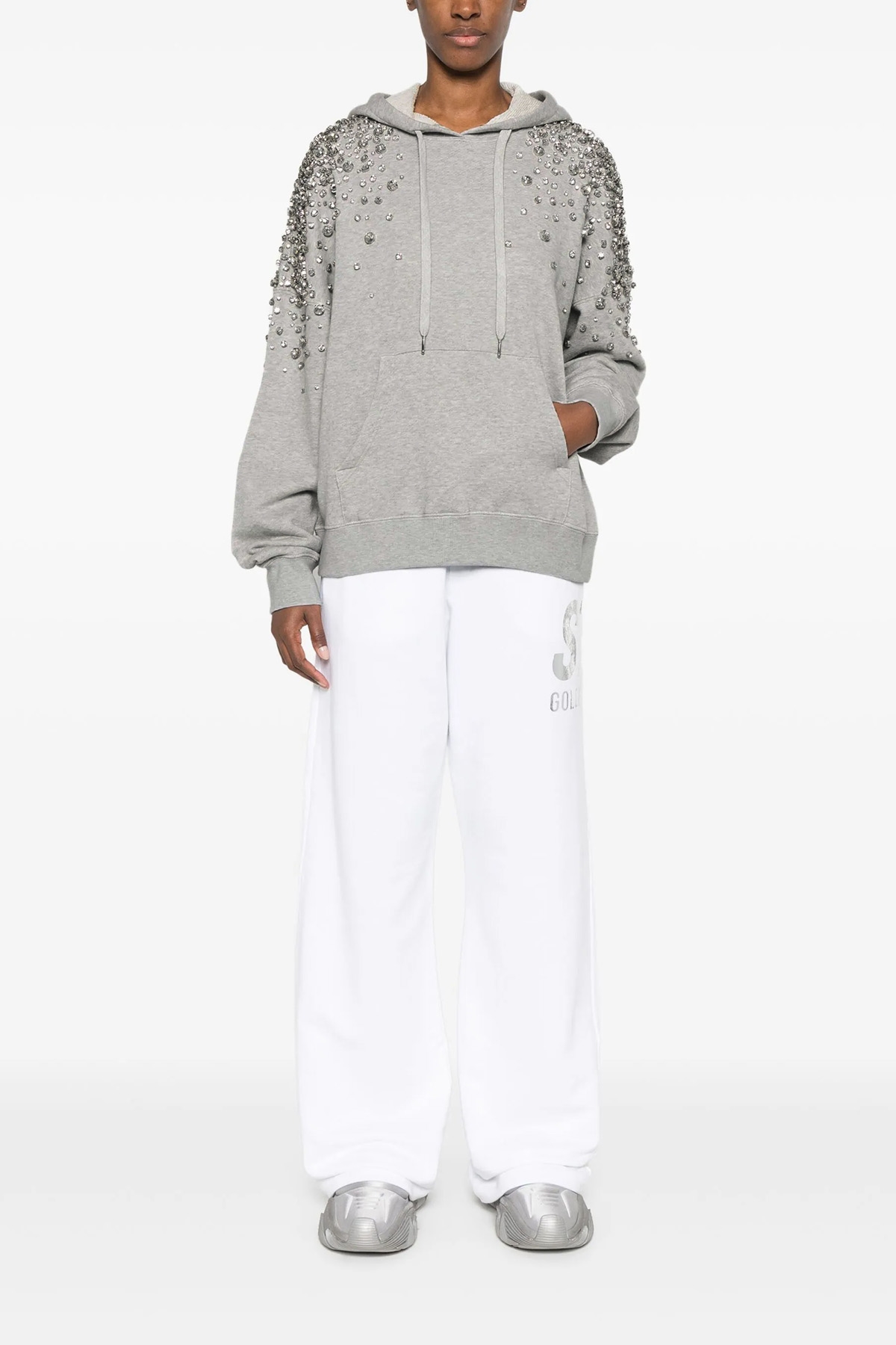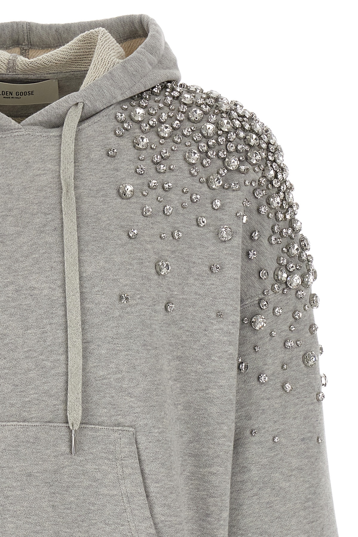 'Melissa' gauze cotton hoodie with degrade crystal applique, kangaroo pocket, long cuffed sleeves and a dropped shoulder.