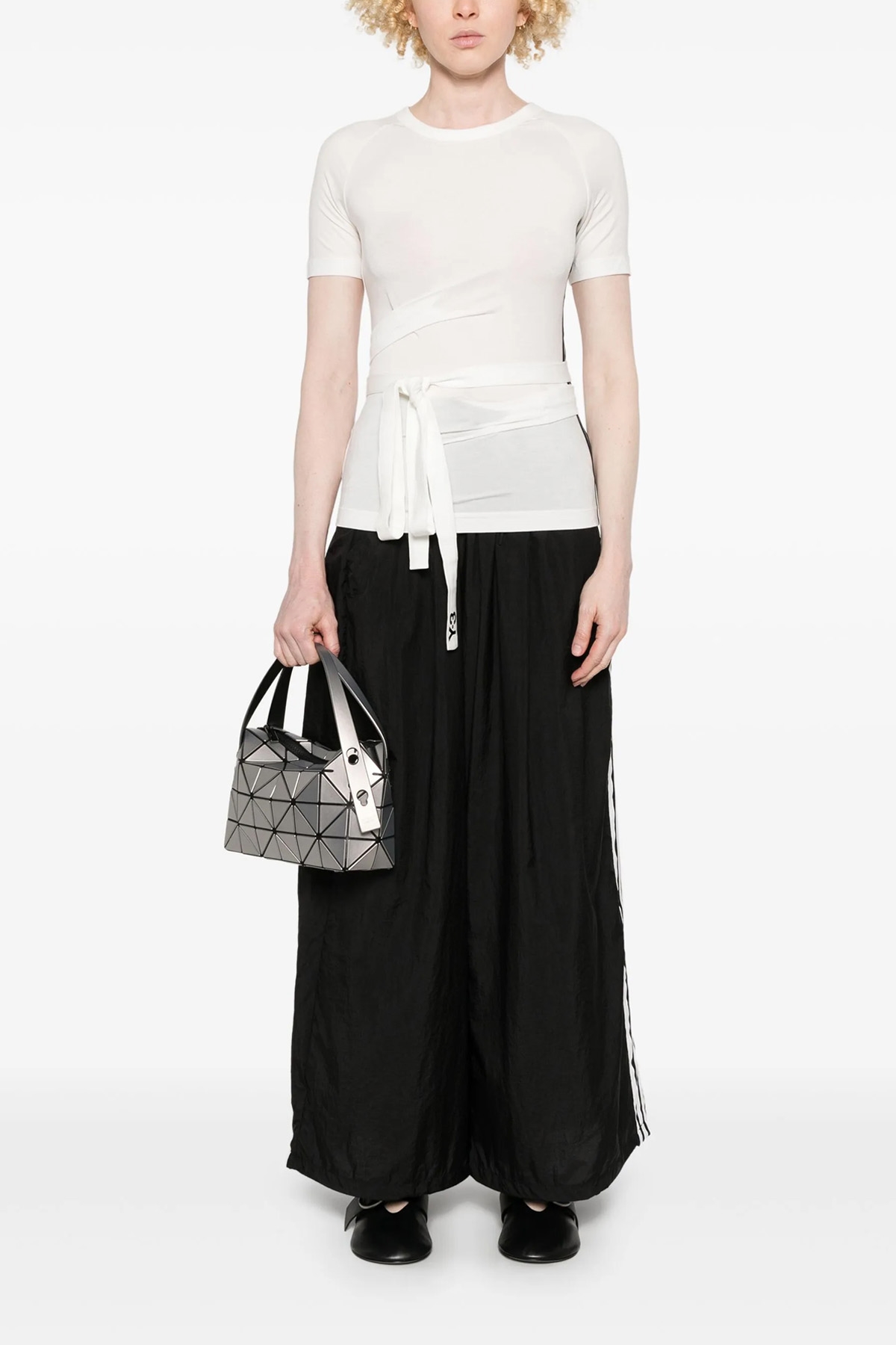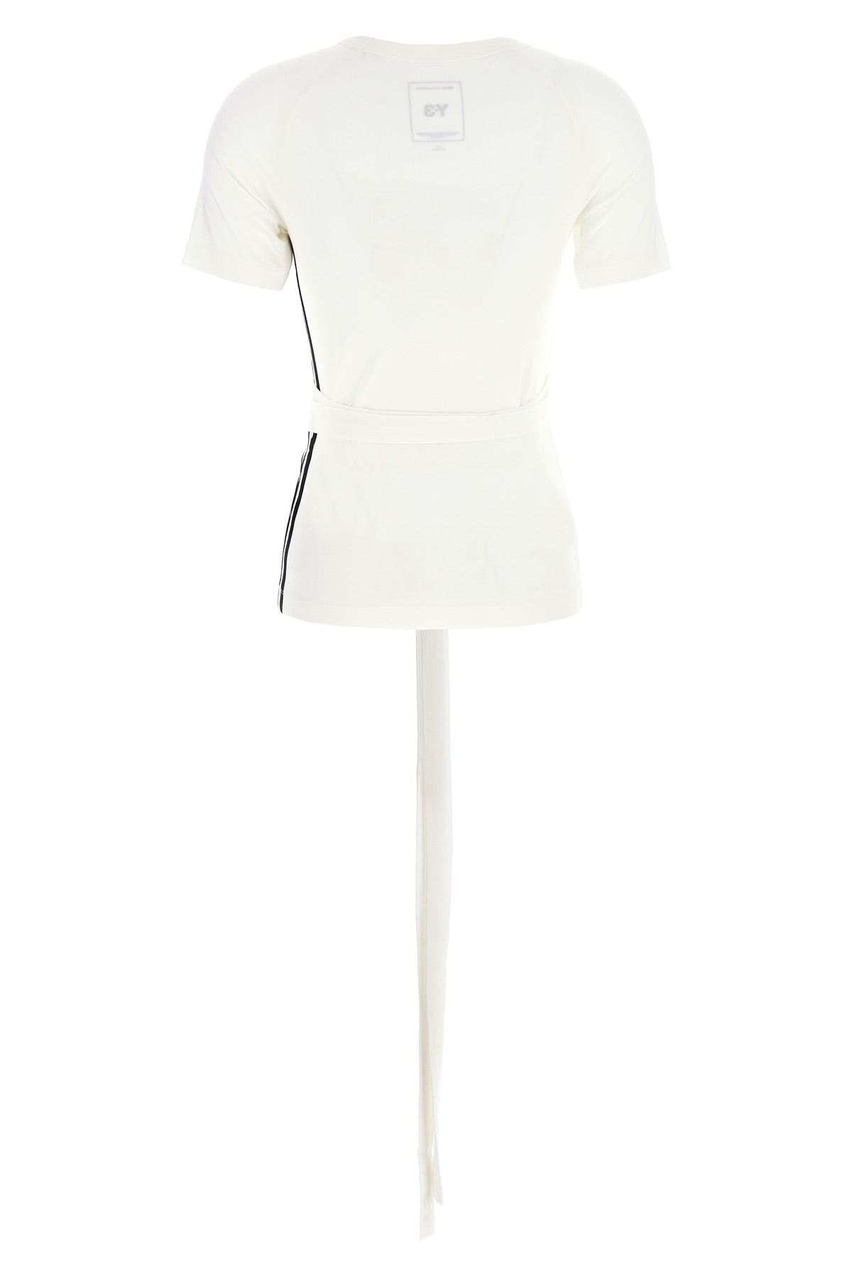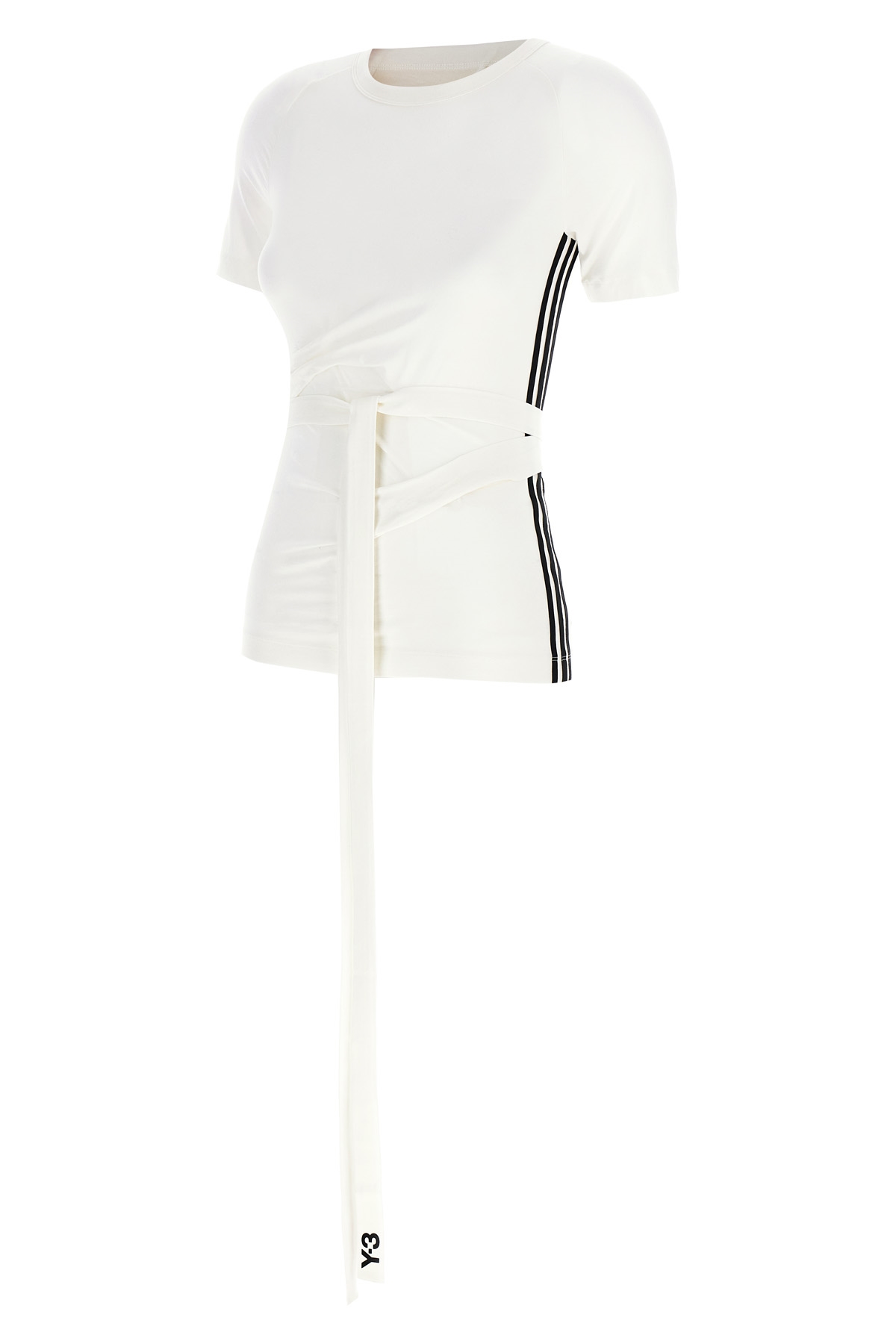 T-shirt in stretch lyocell with contrasting details, crew neck, short sleeves, tapes at the waist to tie as desired.