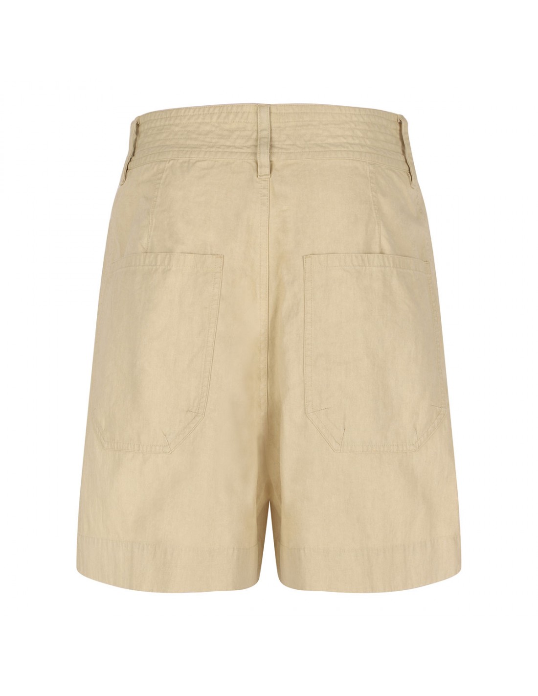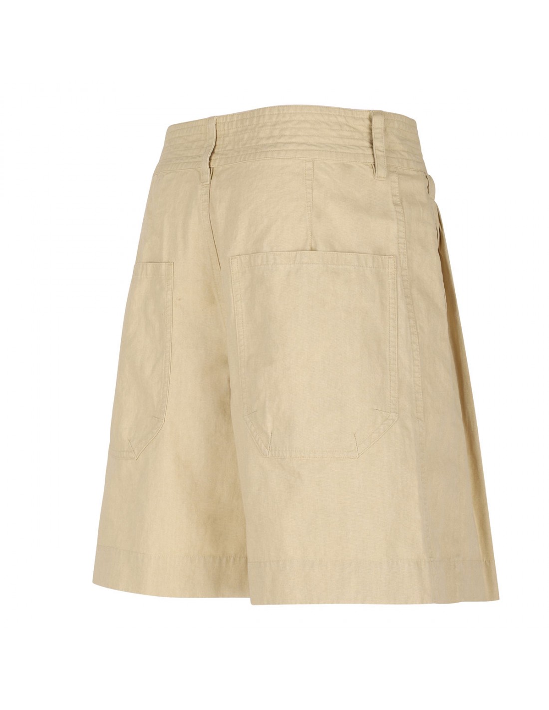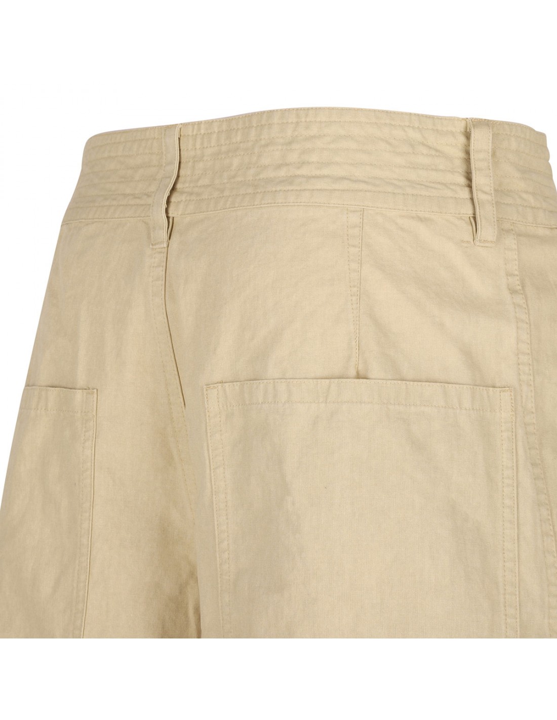 Ecru lightweight cotton-chambray Ingrid shorts from Isabel Marant featuring drawstring under the high waist, relaxed legs, back patch pockets, belt loops on the waistband, button closure.