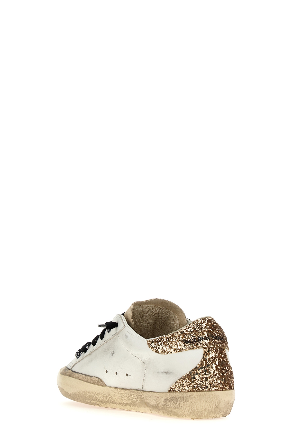 'Superstar' leather sneakers with used-effect details, side star and contrast glitter heel, lace-up closure, rubber sole.