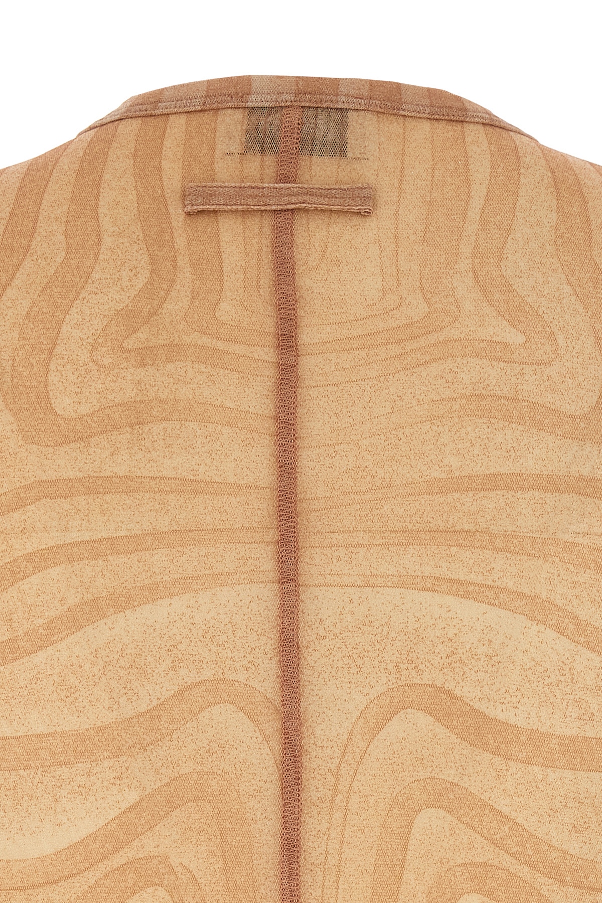Long dress in printed stretch tulle, crew neck, long sleeves.