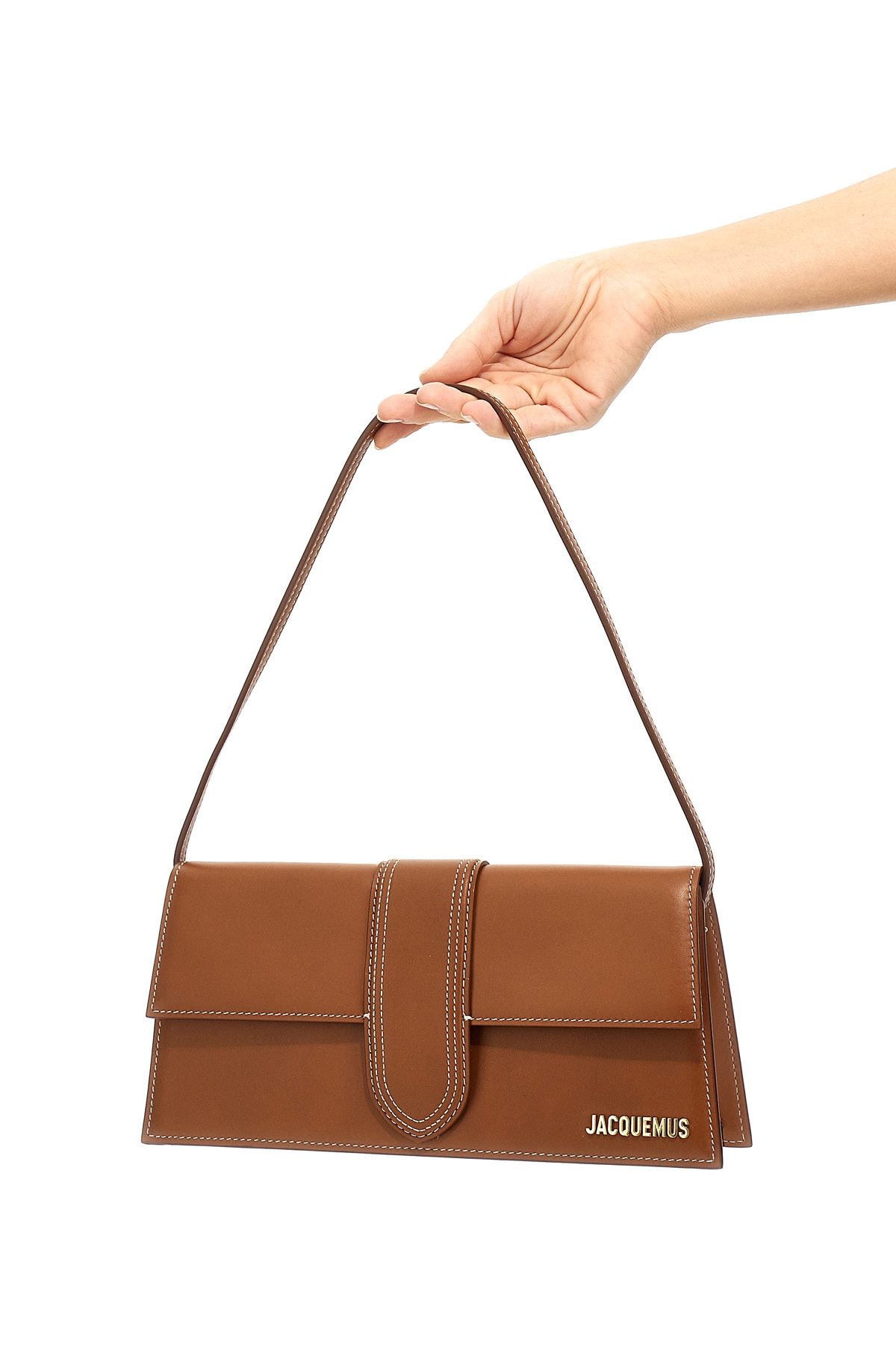 Le Bambino Long leather shoulder bag with magnetic flap closure, front metal logo applique.