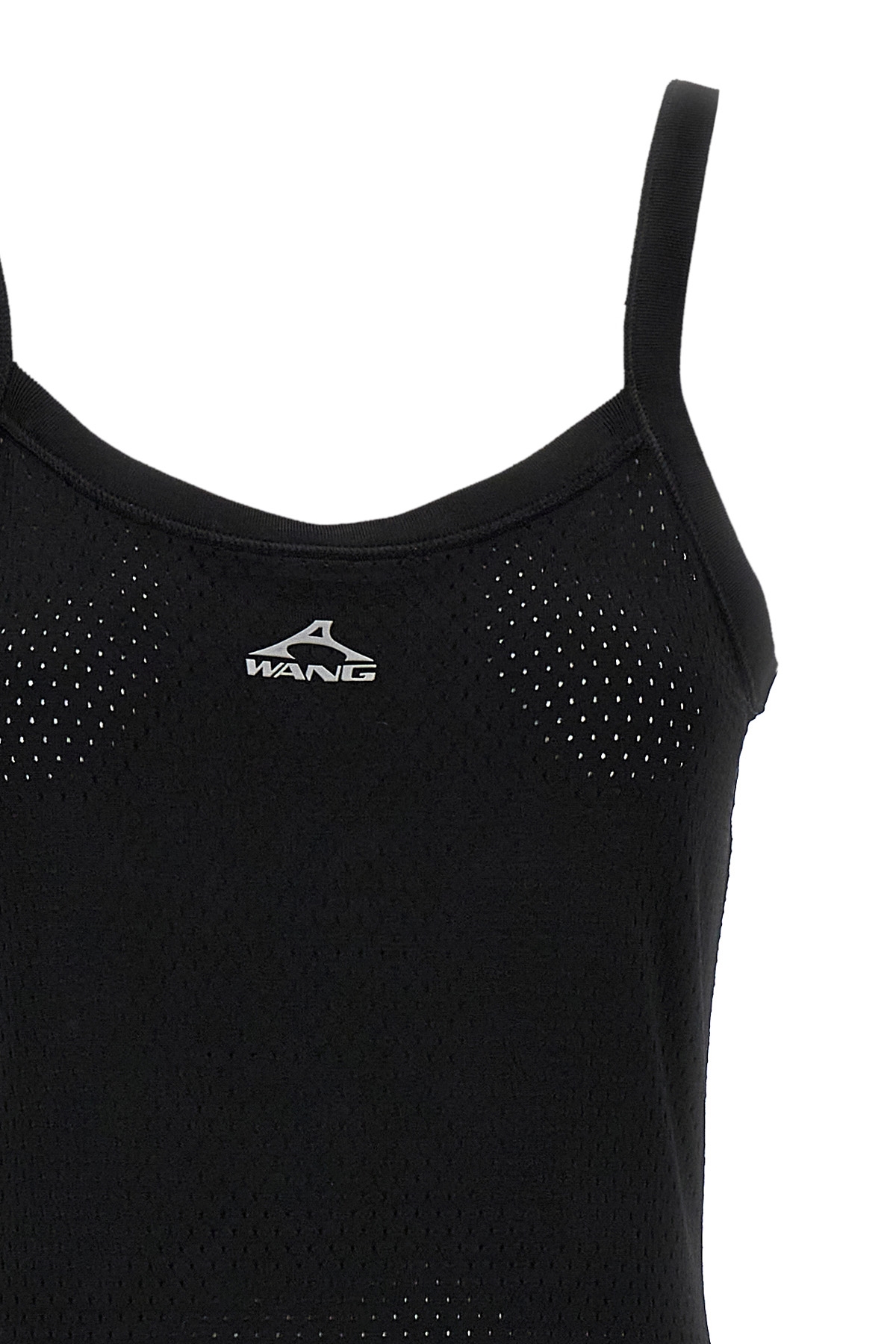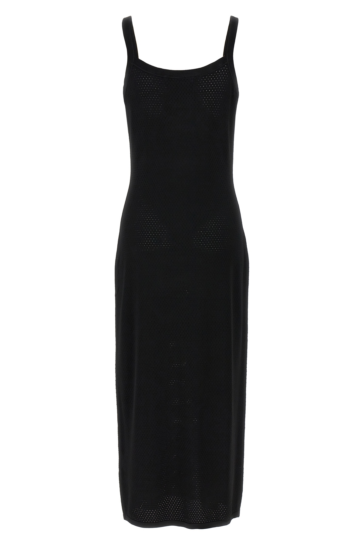 Openwork mesh dress, petticoat with narrow straps, front 3D logo, round neckline.