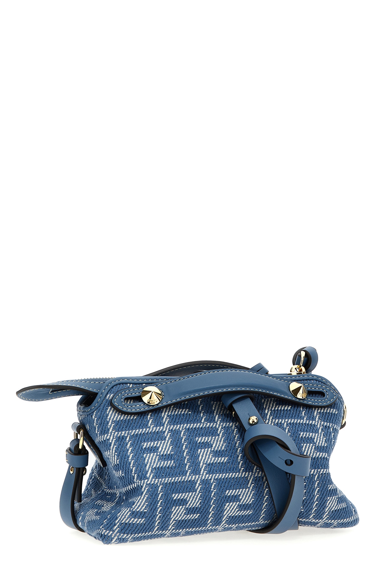 FF jacquard By The Way Soft Mini handbag with denim effect and smooth leather, zip closure, double handle with metal details, logo tag with removable keyring, adjustable and removable shoulder strap.