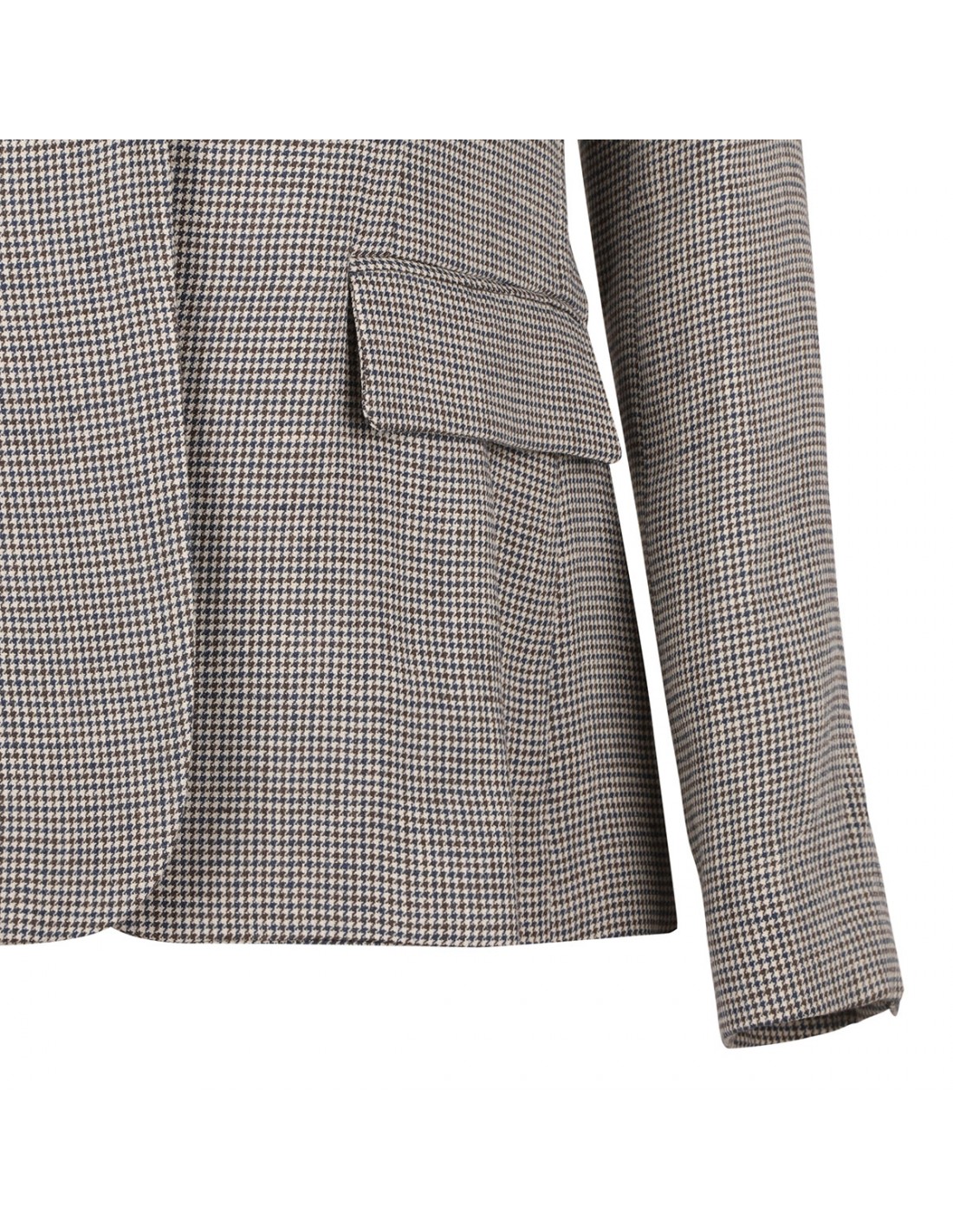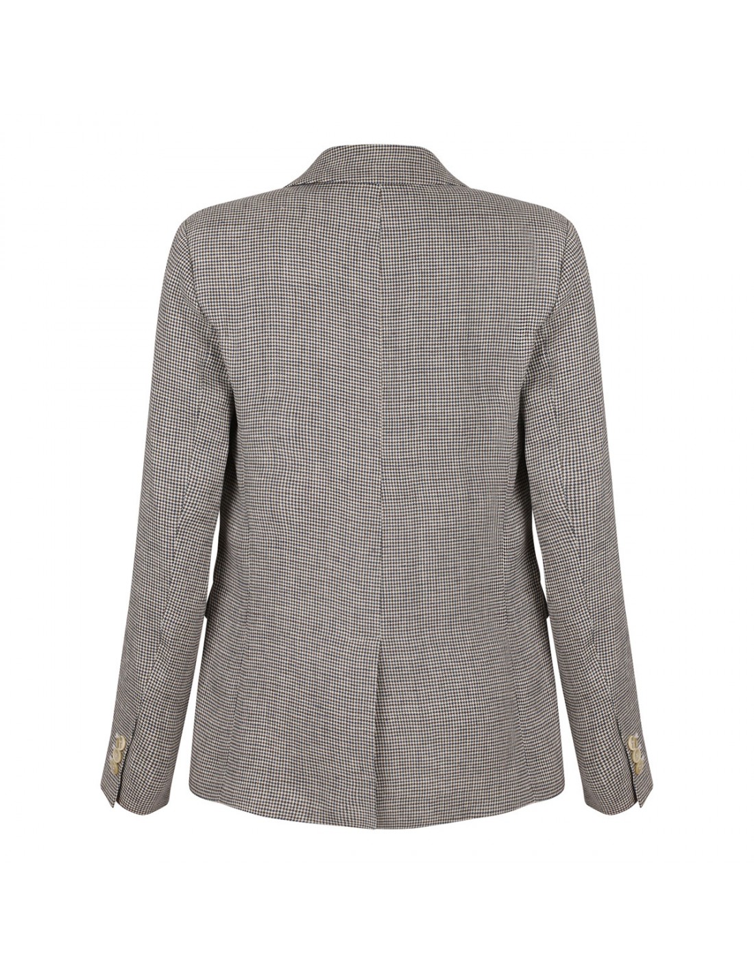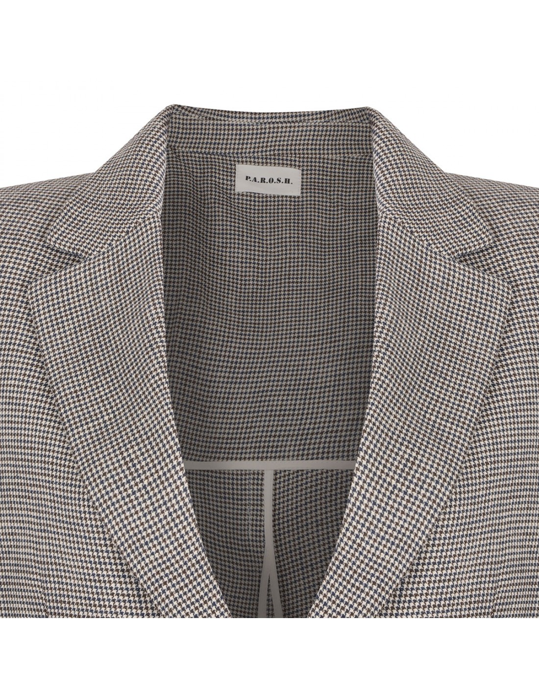 Multicolor linen blazer from PAROSH featuring pied de poule motif, front flap pockets, classic lapel, single breasted silhouette, button closure, chest pocket, buttoned cuffs, back vent.