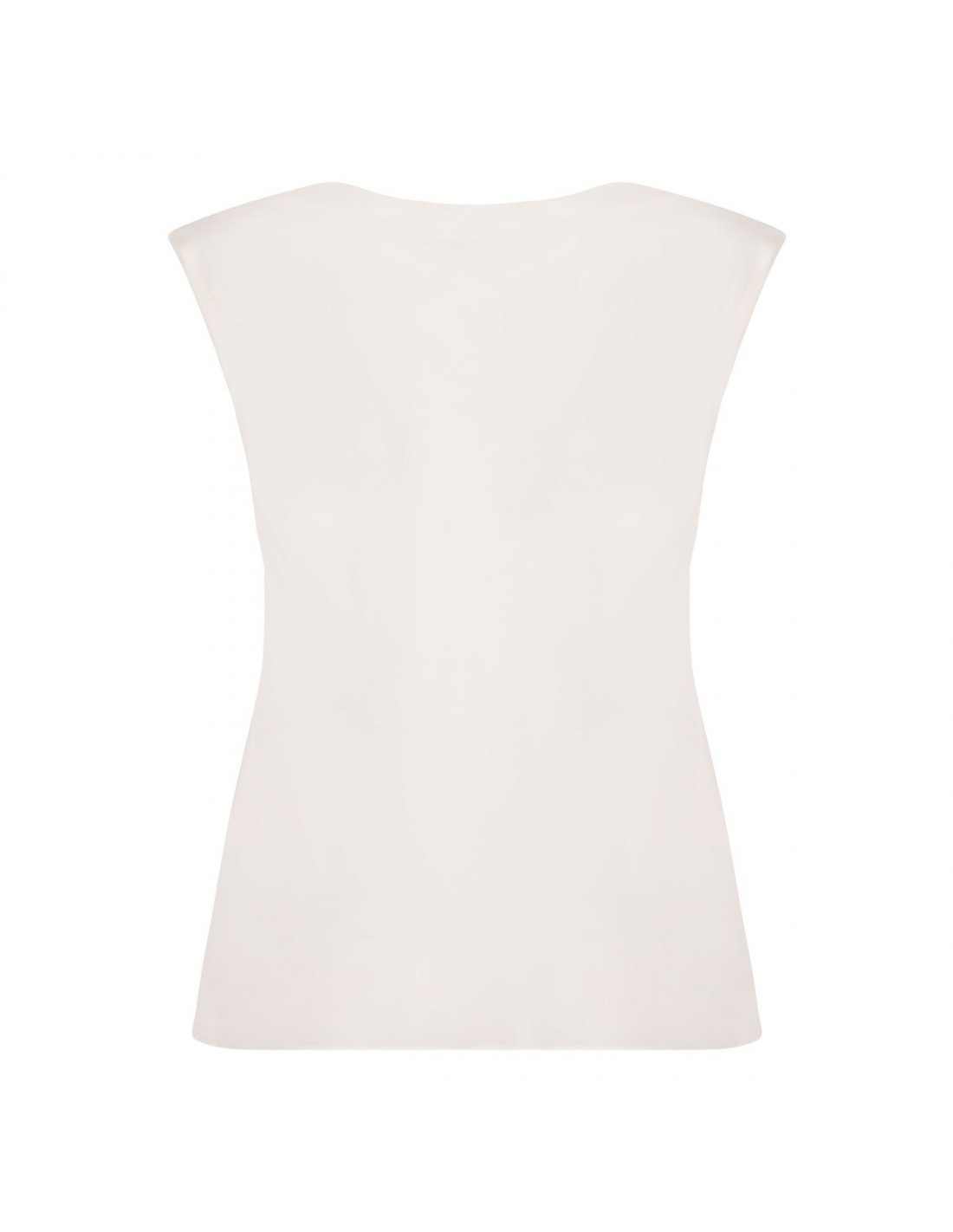 Ivory silk top from Theory featuring cowl neck, sleeveless silhouette, slim fit. Unlined style.