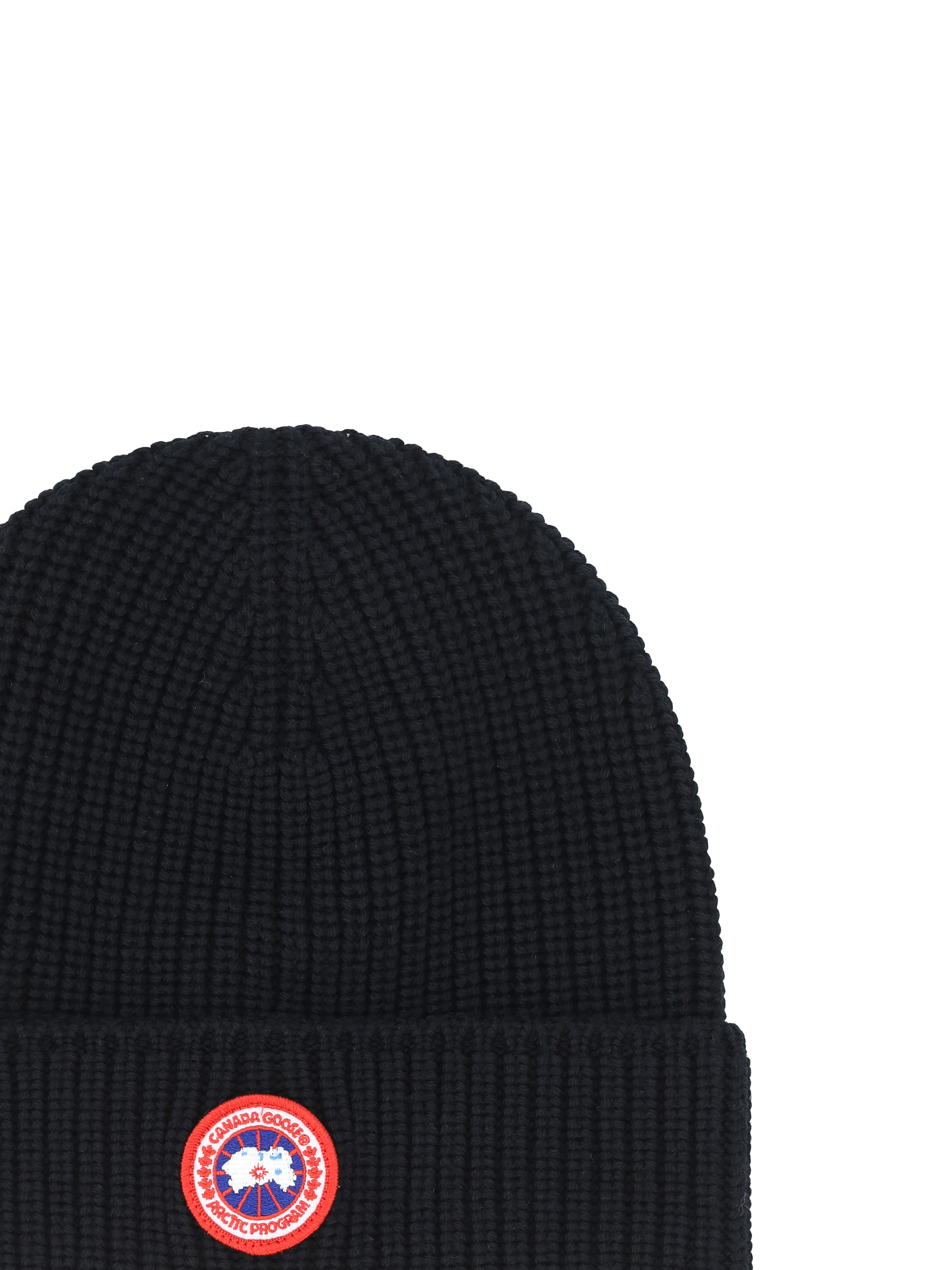 Melino Wool Rib Toque Beanie by Canada Goose, contrasting iconic brand logo on the front.