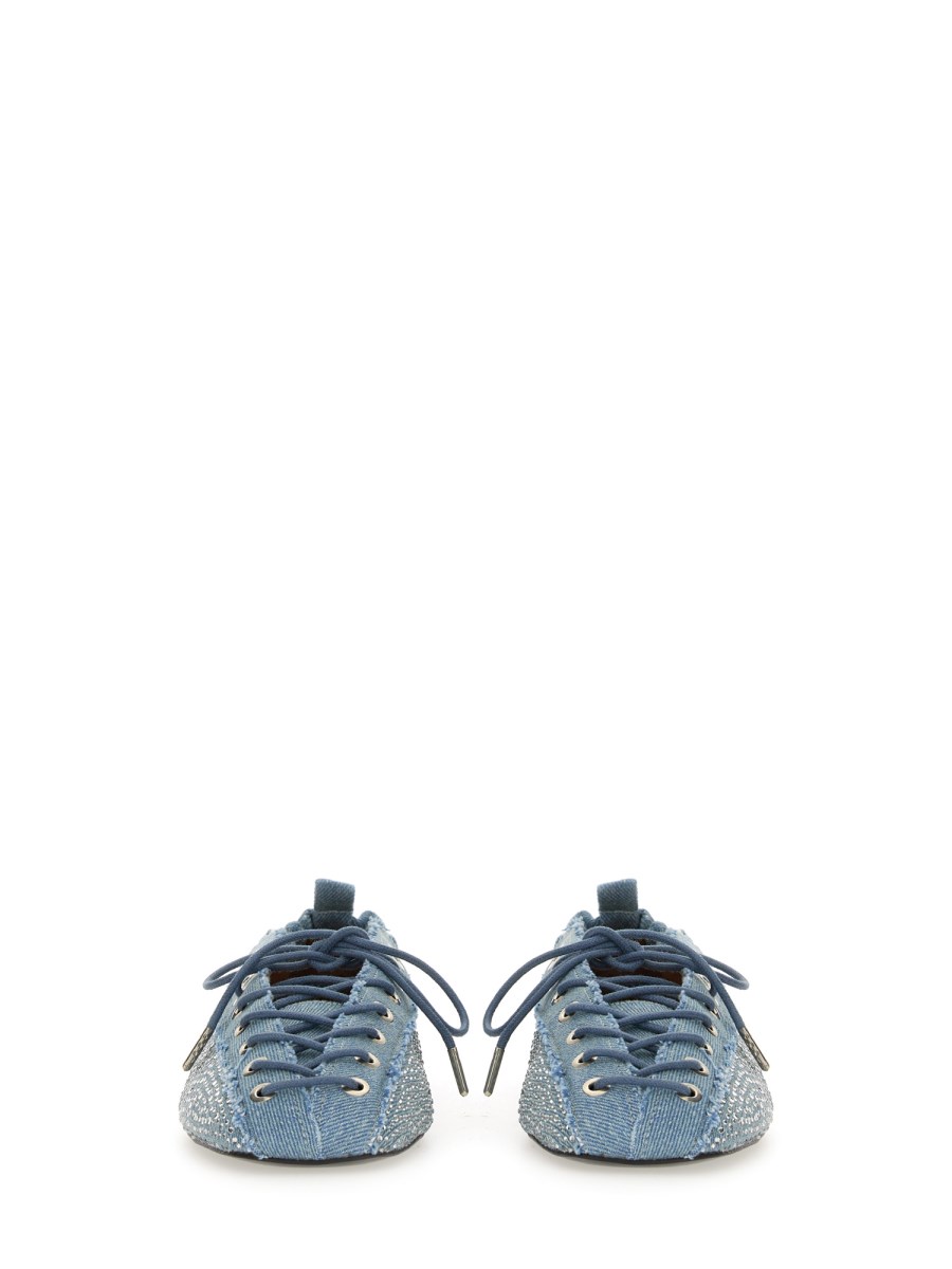 데님 레이스업 발레리나 위드 라인스톤