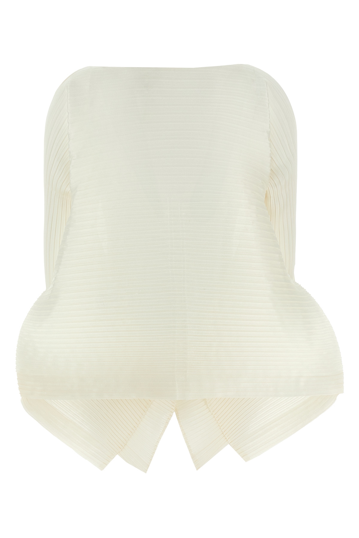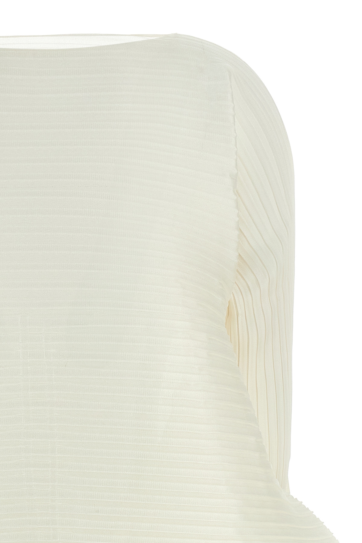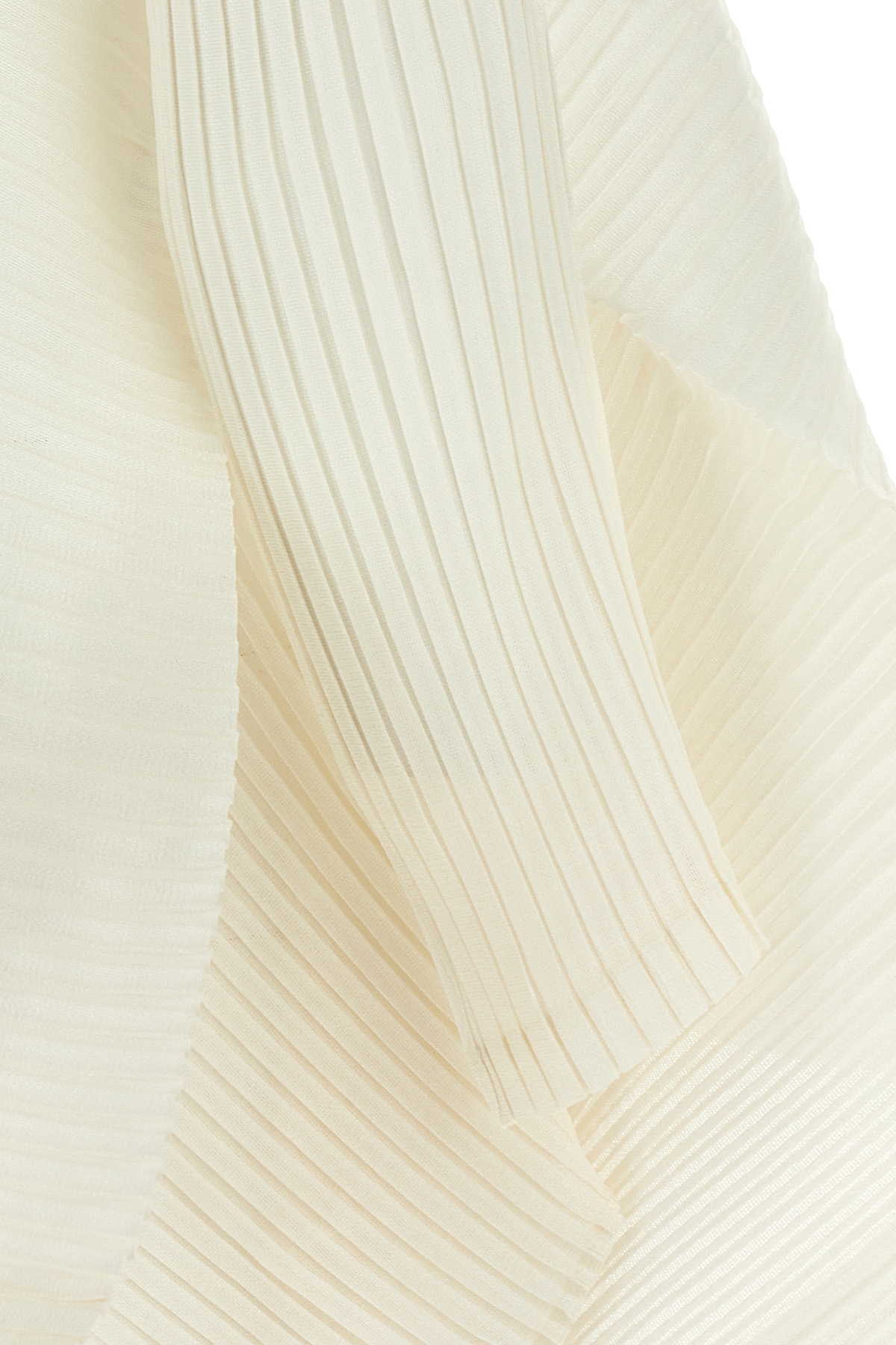 'Paneled Pleats' pleated fabric sweater, wide side panels, boat neck, long sleeves. SUSTAINABLE: Product made from recycled polyester.
