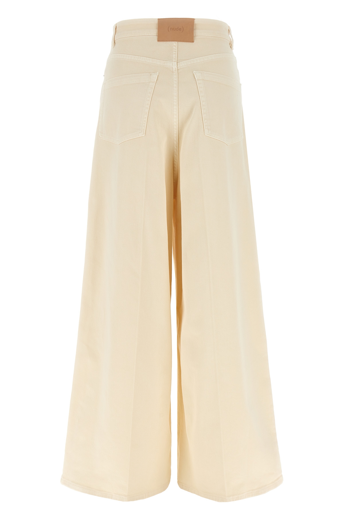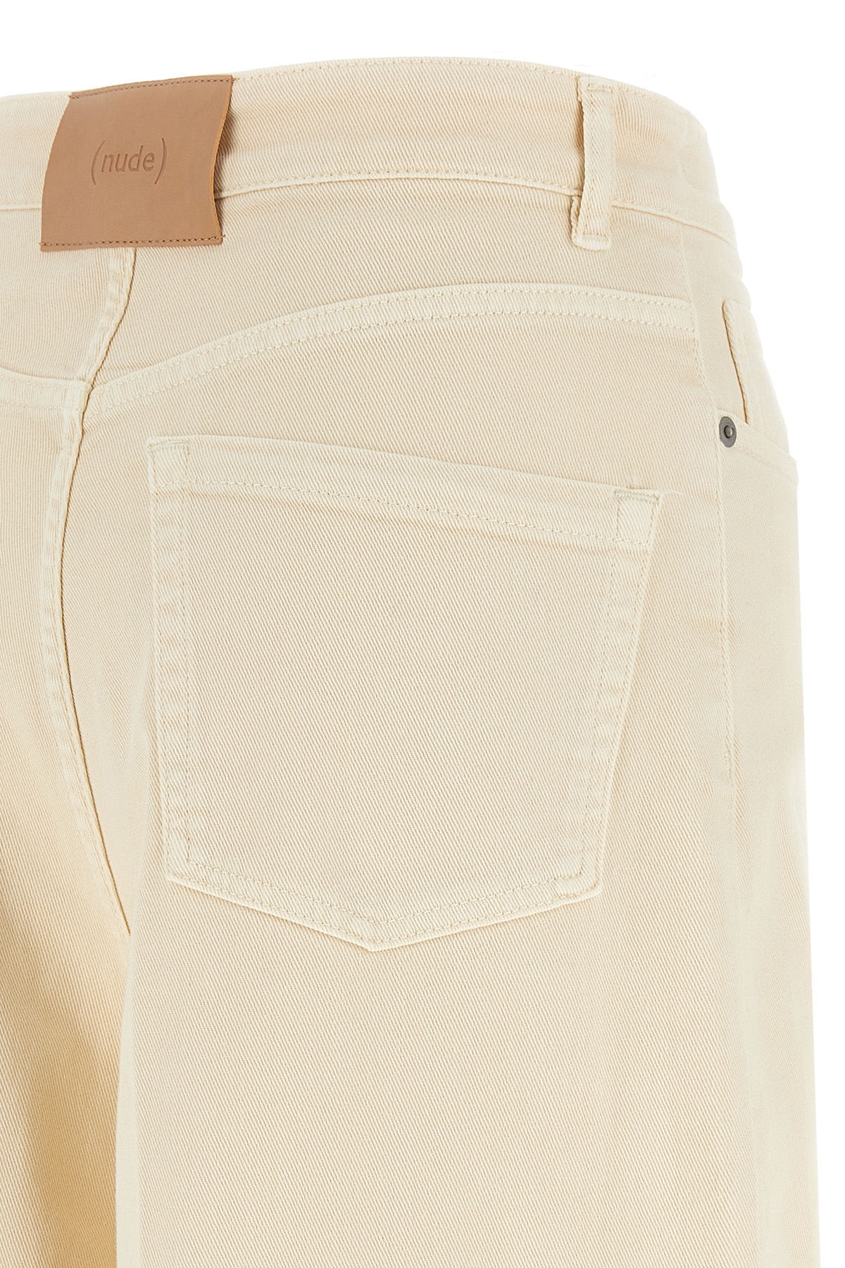 Garment-dyed stretch cotton denim jeans with high waist and loose leg, front zip and button closure, pockets, back leather logo tag.