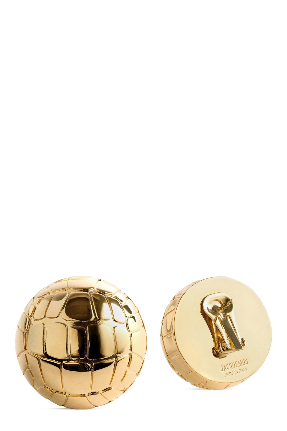'Les Boucles Salon' earrings in gold brass with crocodile pattern, circle model, clip closure. PRODUCT CANNOT BE RETURNED
