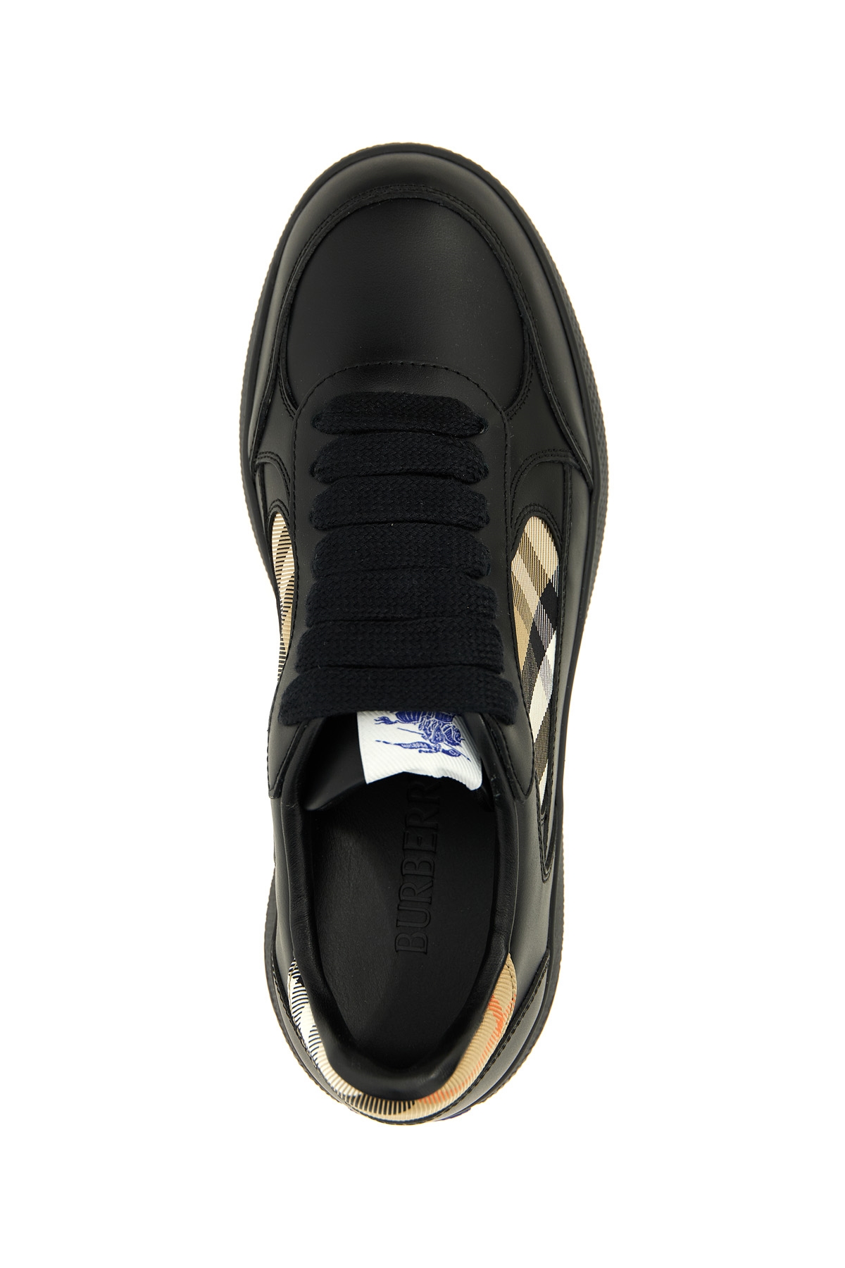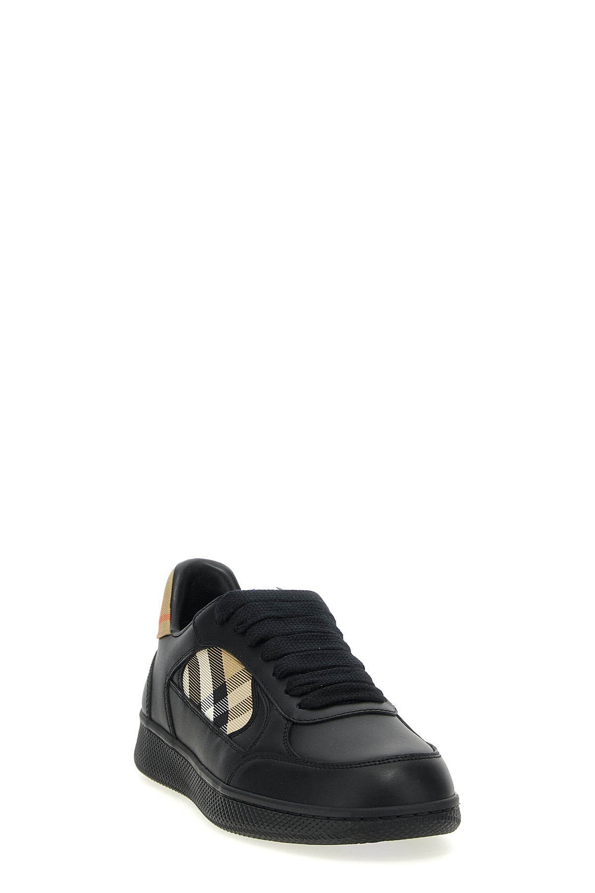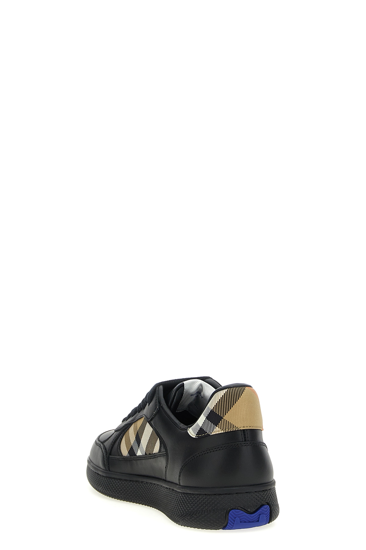 'Terrace' leather sneakers with check print cotton blend twill details, lace-up closure, rubber sole.