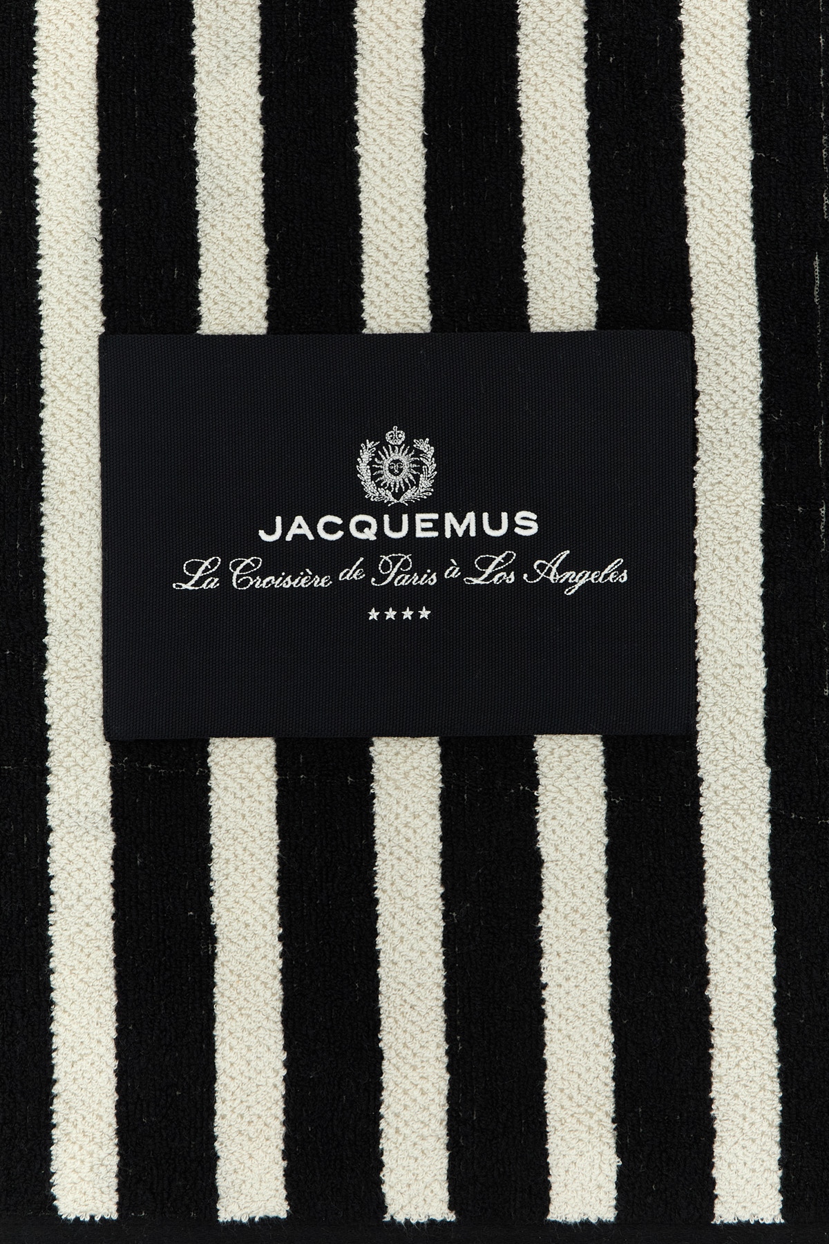 'La Serviette Rayures' striped cotton and linen beach towel with large grosgrain 'Jacquemus Cruise' patch.