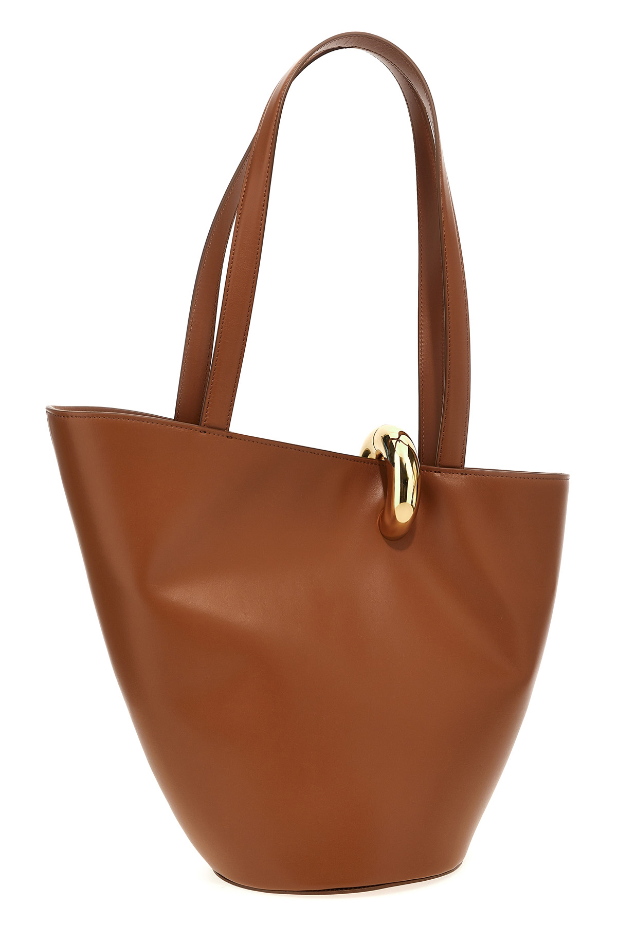 Le Bambola Moyen' shoulder bag in smooth leather, asymmetric bucket pattern, front metal lettering logo, double fixed handle, and gold metal ring clip closure. Product made with untreated leather, any signs and nuances are to be considered characteristics of uniqueness.25E251BA4123000810_2025-03-20T08-44-48.595Z.jpg 25E251BA4123000810_01_P_2025-03-20T08-44-48.757Z.jpg 25E251BA4123000810_03_P_2025-03-20T08-44-49.267Z.jpg 25E251BA4123000810_06_P_2025-03-20T08-44-49.506Z.jpg 25E251BA4123000810_07_P_2025-03-20T08-44-49.817Z.jpg