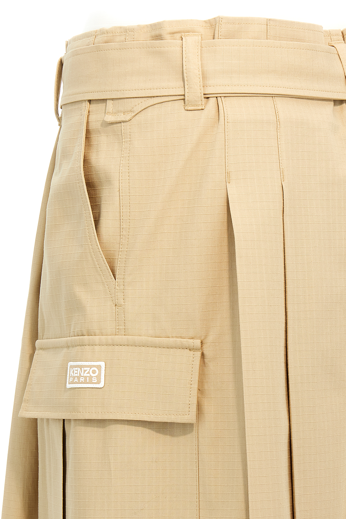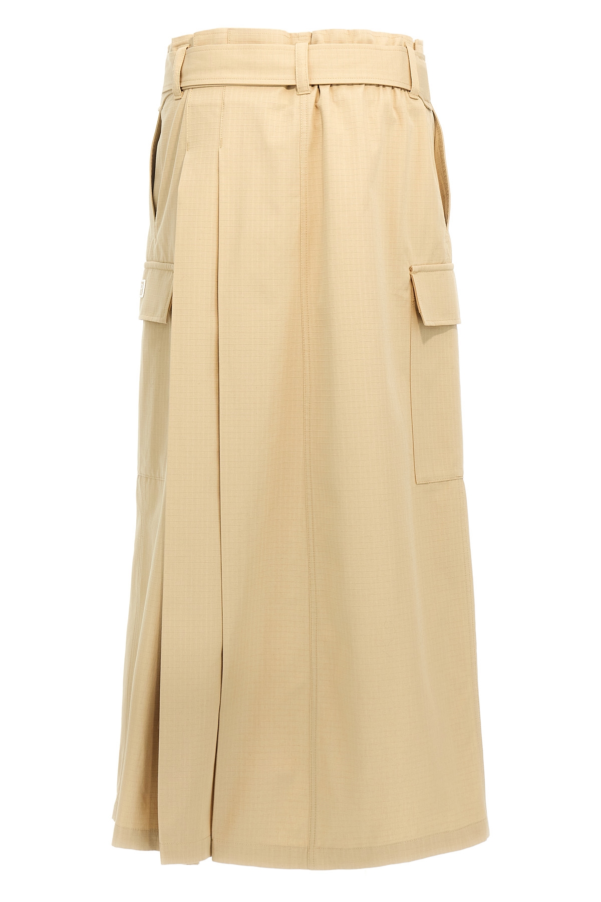 Long 'Cargo' skirt in ripstop cotton canvas with pleats, belt loops at the waist, wallet closure, side logo patch.