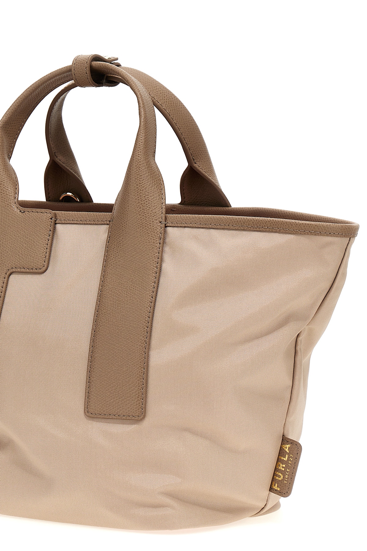 'Piuma M' nylon shopping bag with leather details, double handle, zip closure.