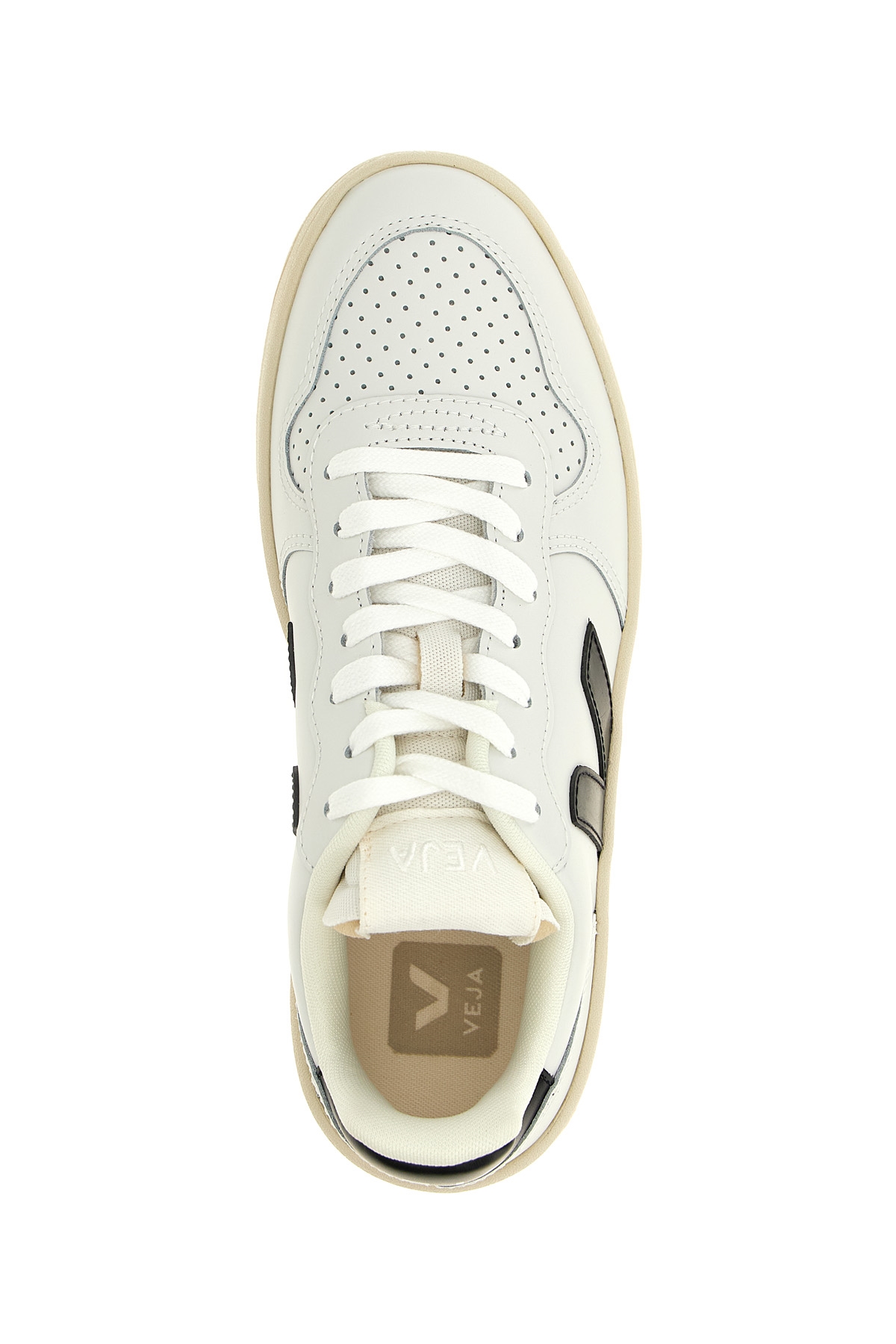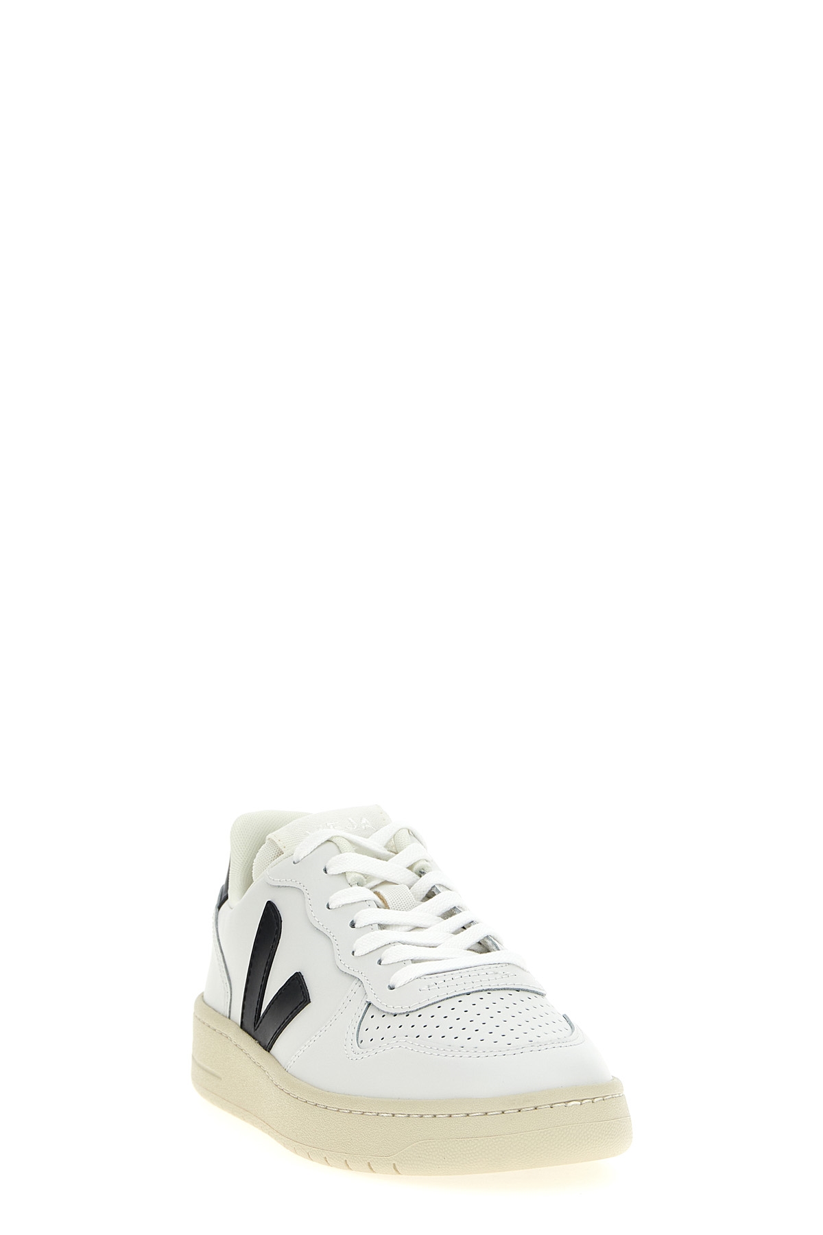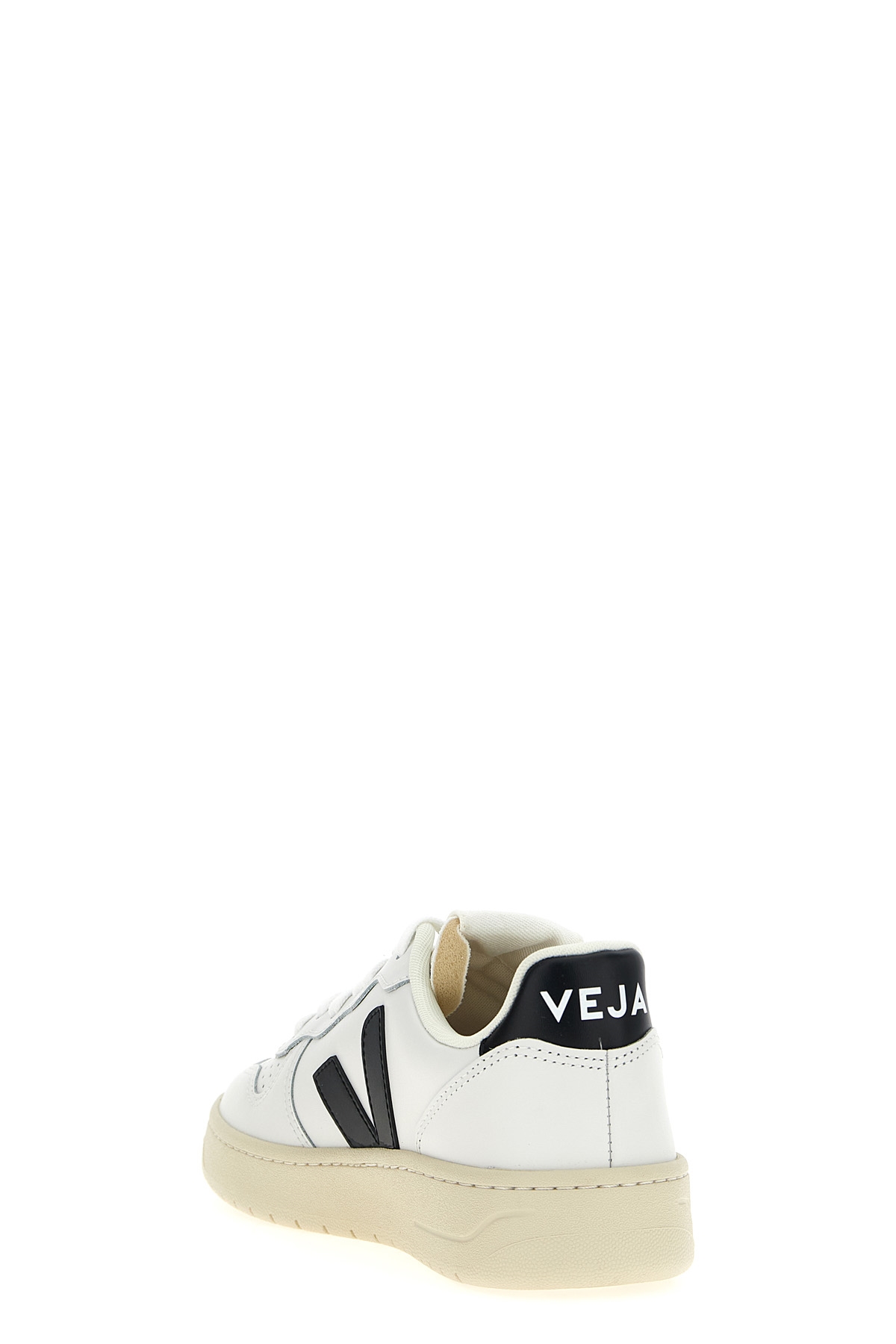 'V-10' leather sneakers with contrast heel and logo, lace-up closure, rubber sole.