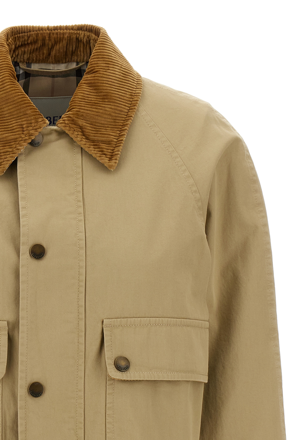 Cotton canvas jacket with contrast velvet collar, contrast check print lining, front zip closure, front pockets, long sleeves with adjustable strap in the cuff.