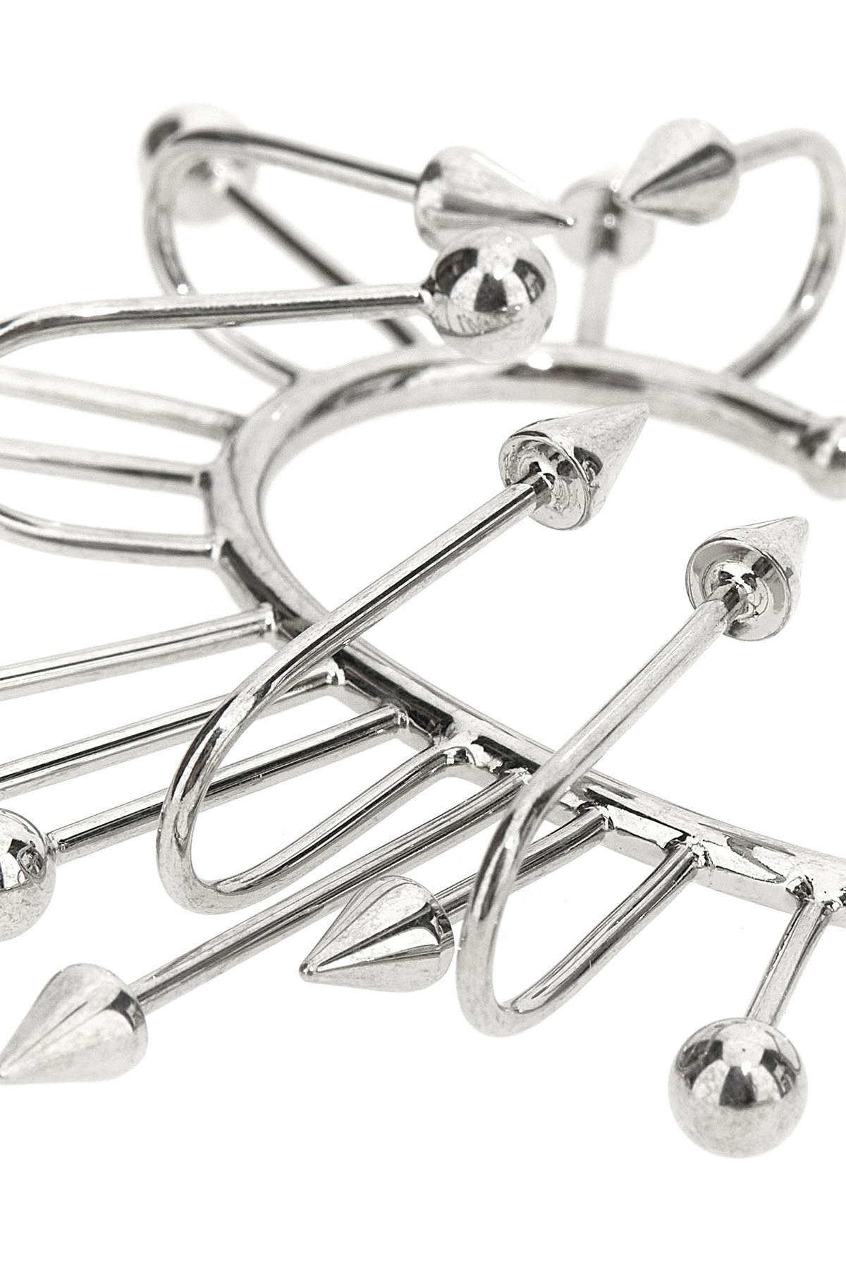 'The Spike' earrings in silver metal with studs, interlocking. ITEM CANNOT BE RETURNED