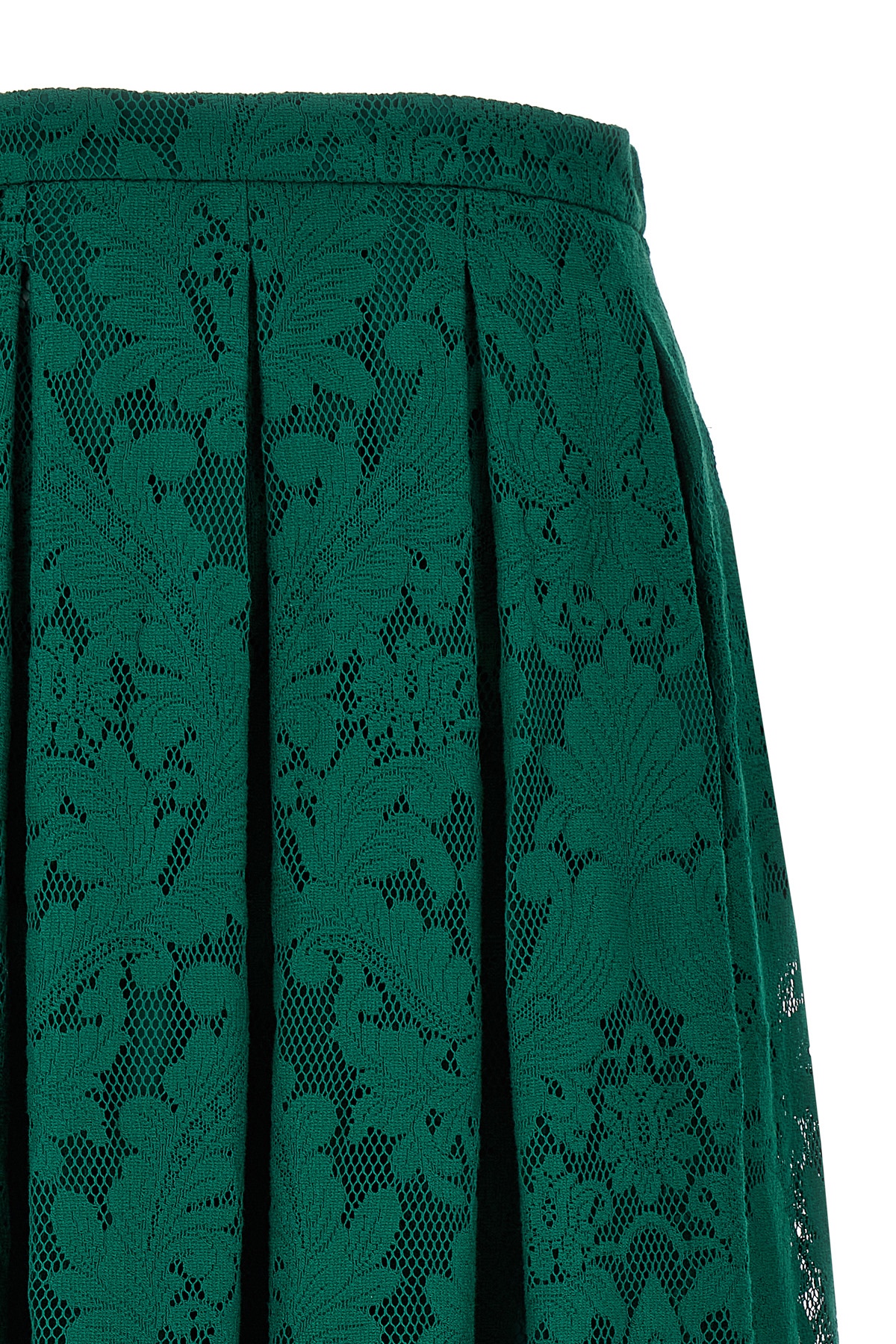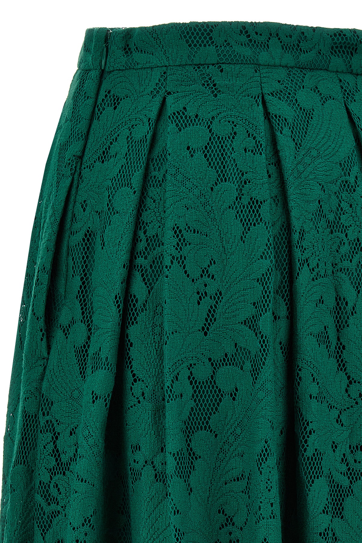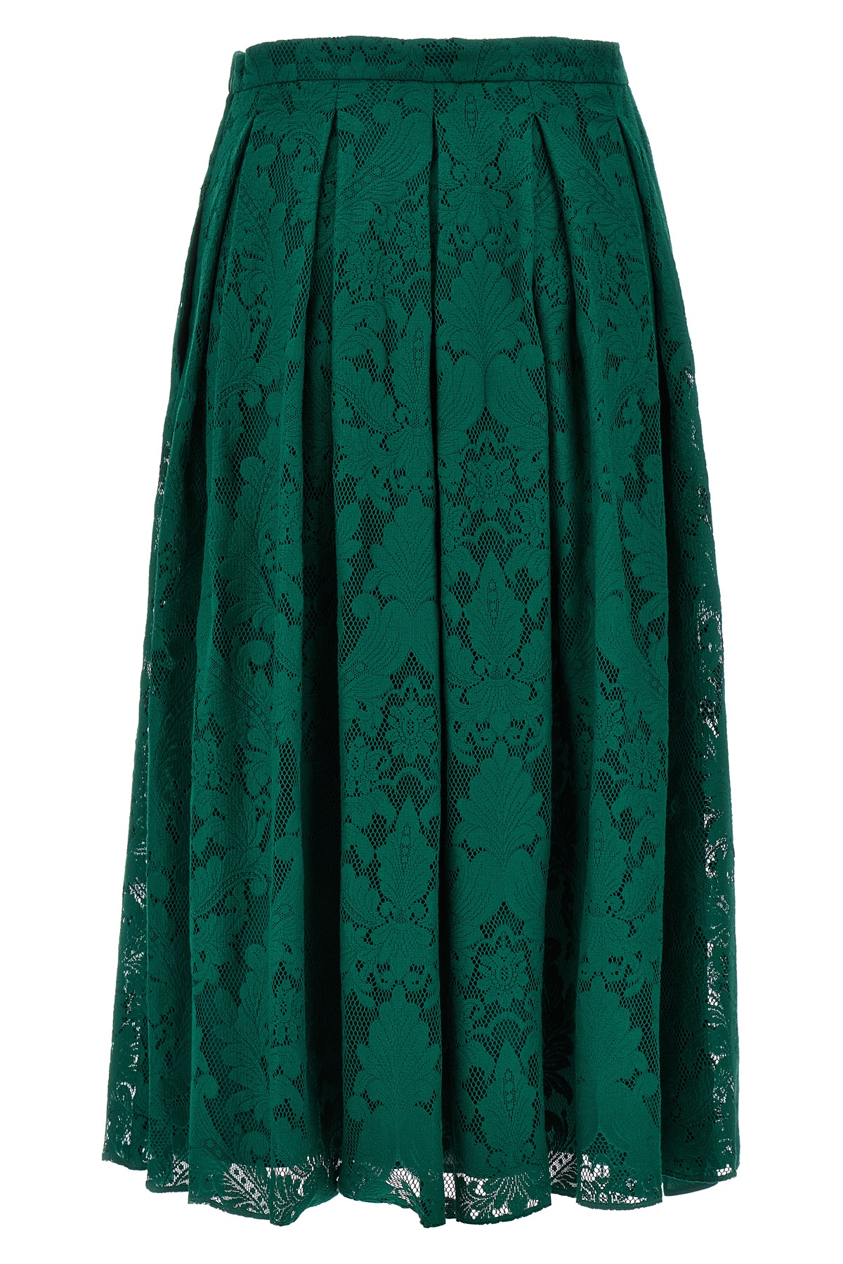 Ampezzo lace midi skirt, side zip closure, pockets, silk blend underskirt with removable elastic waistband.