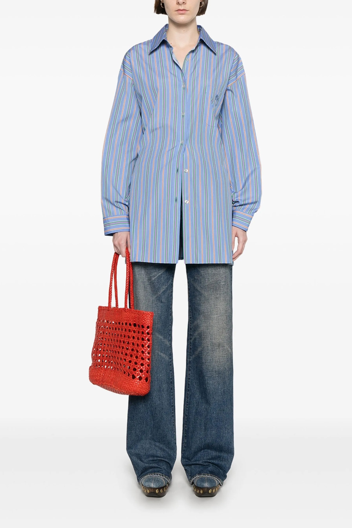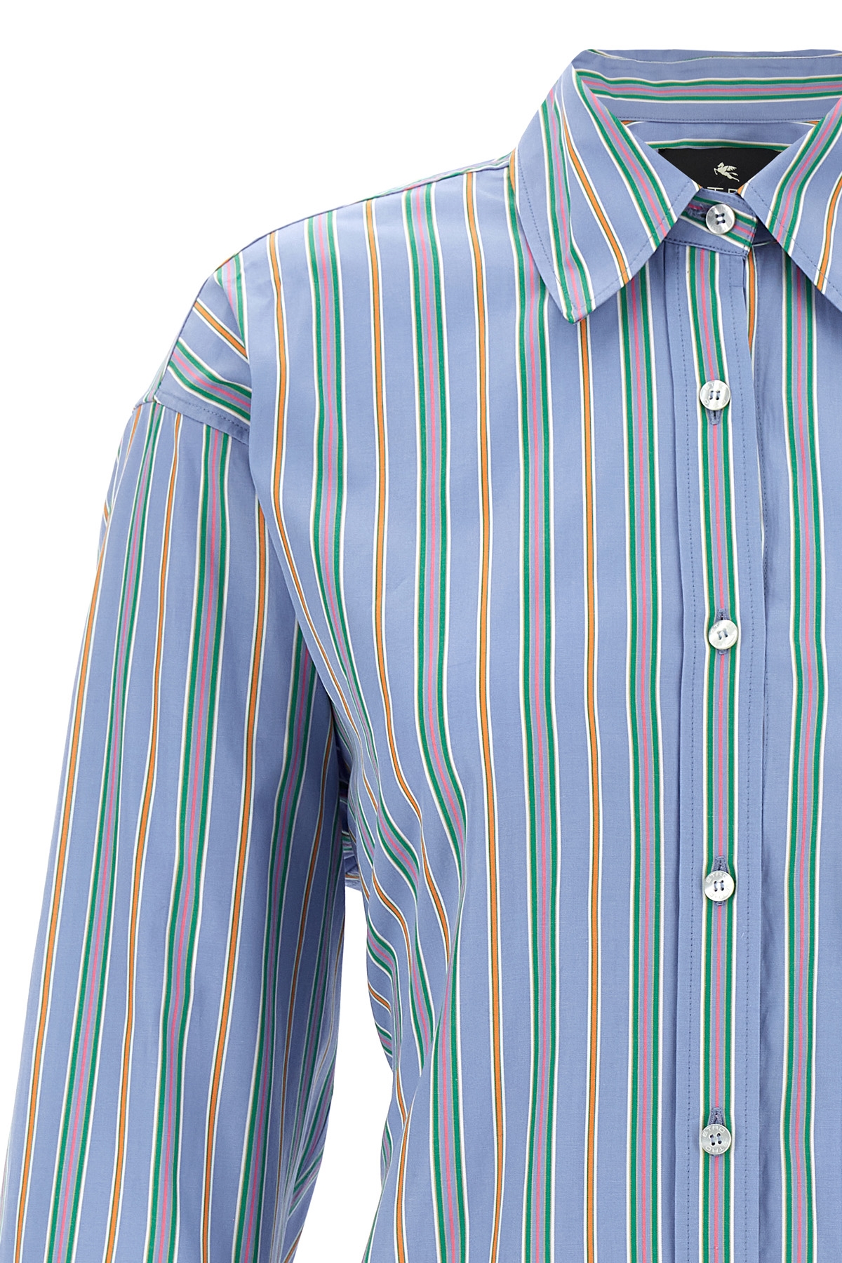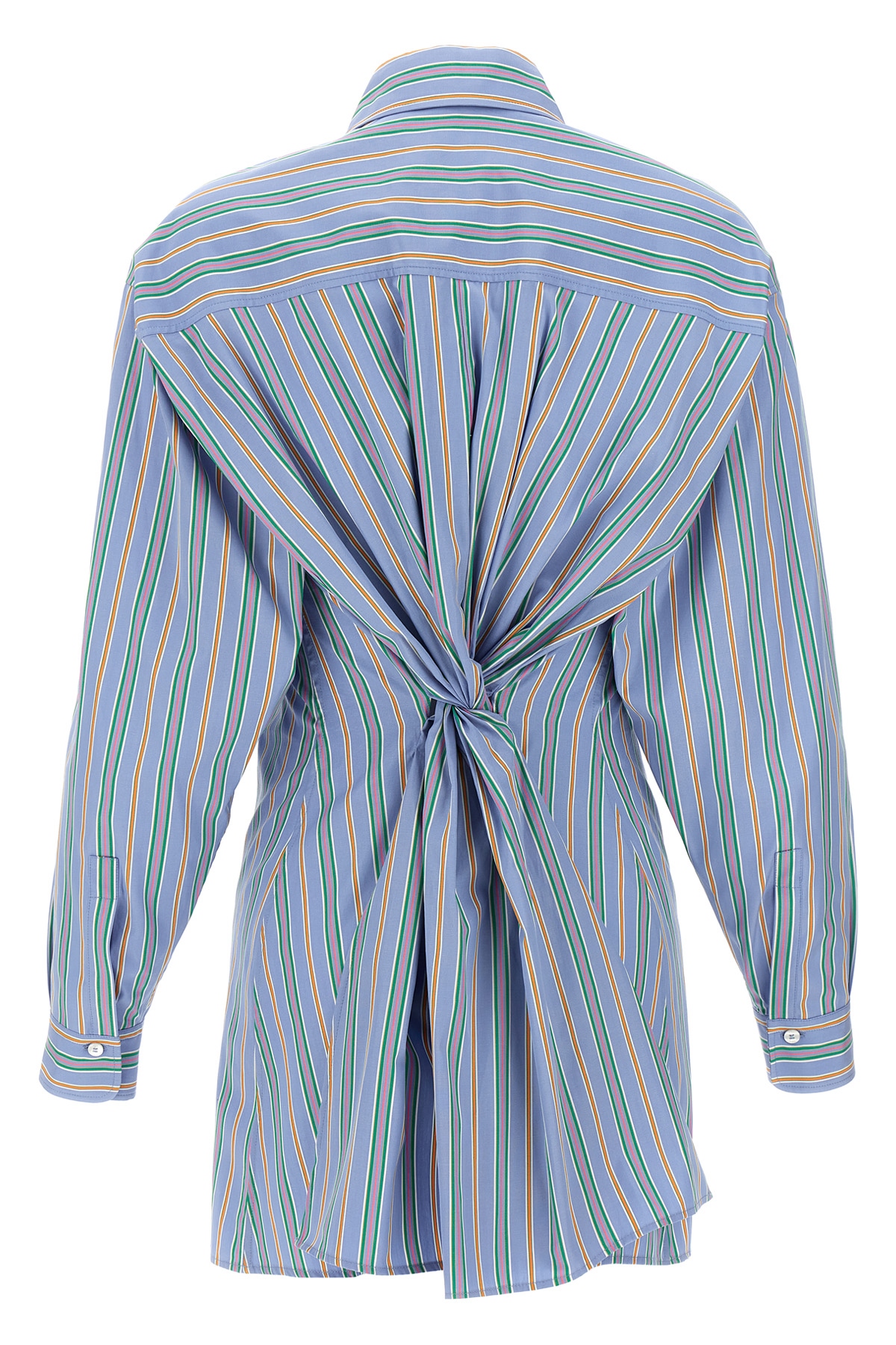 Striped stretch cotton poplin shirt, with scarf detail and back knot, front button closure, pocket with logo embroidery, long sleeves with cuffs.