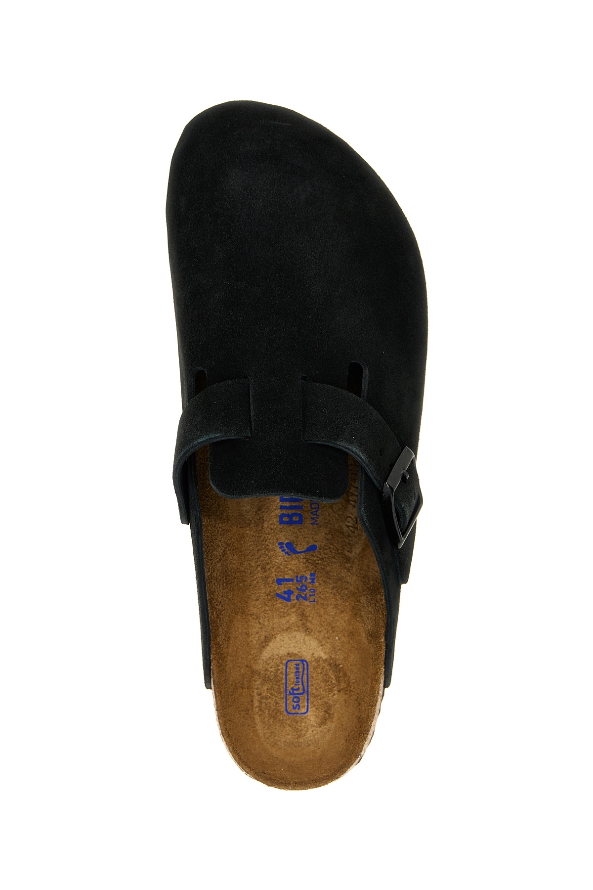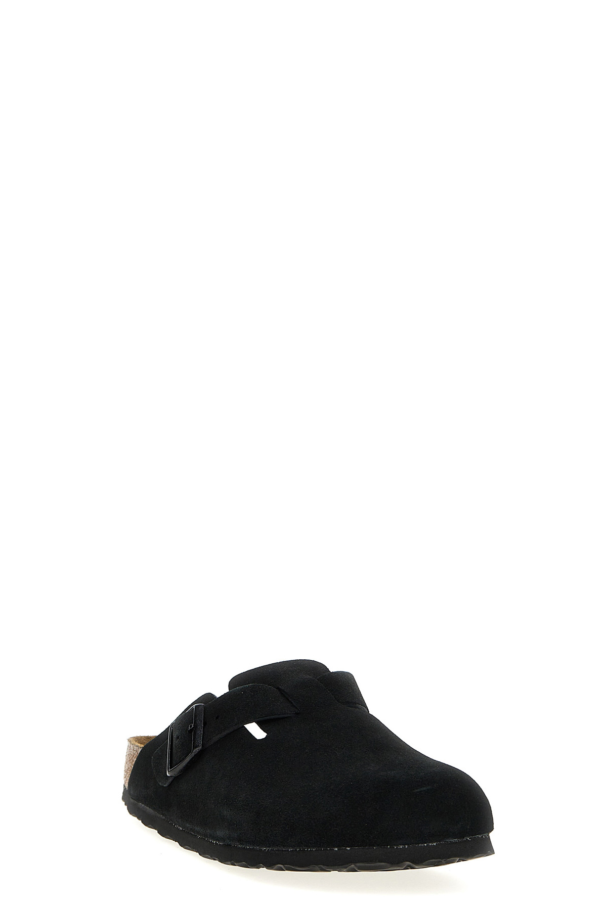 'Boston' suede sabots, cork insole, rubber sole.