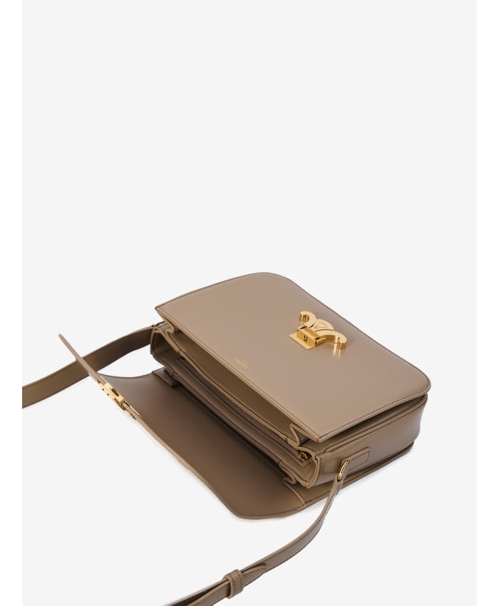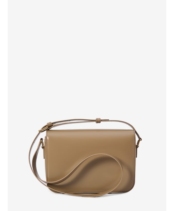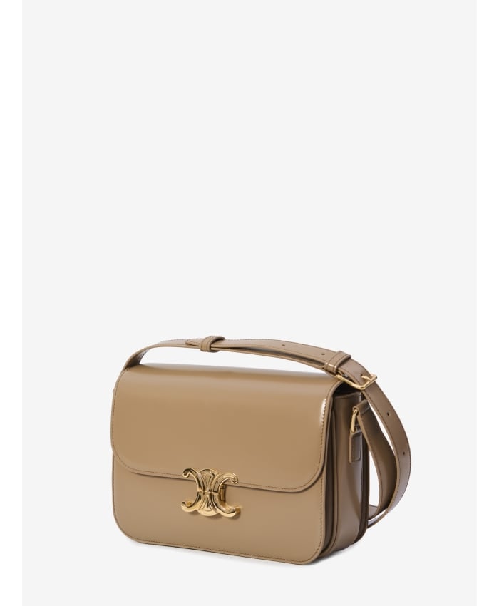 Triomphe Classique bag in brown smooth calfskin with gold-tone metal Triomphe clasp closure. It features adjustable shoulder strap, three main
