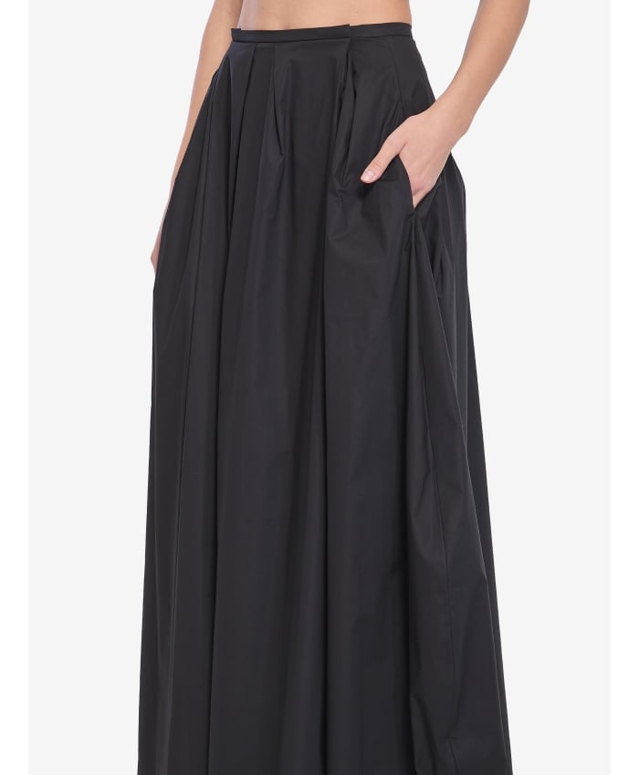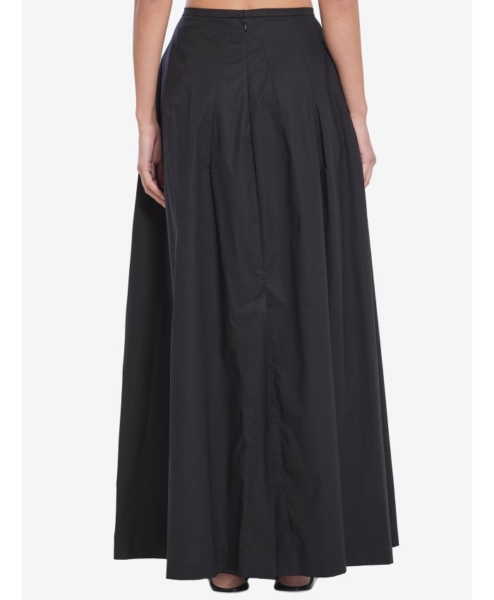 Balla long skirt in black cotton blend. It features pleats and darts at the waist for added volume, two in-seam side pockets, a concealed zip and