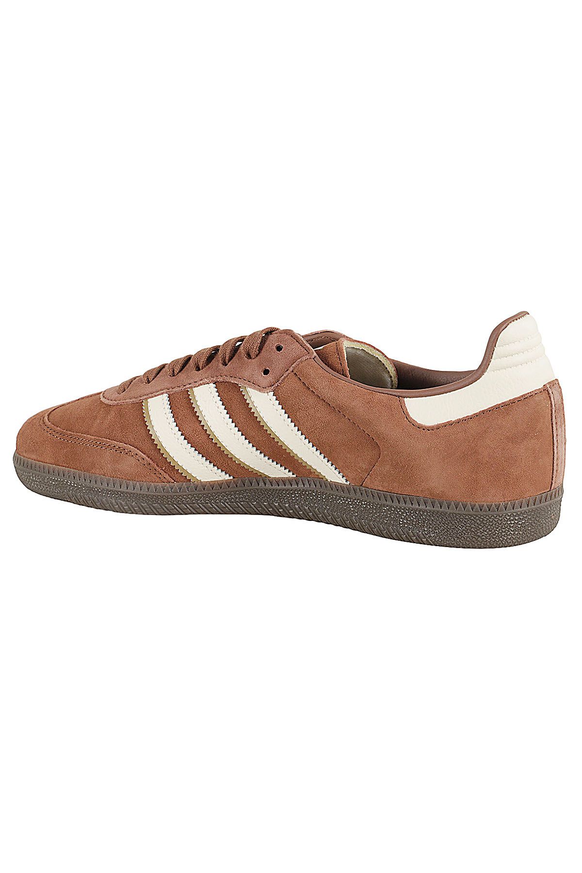 - Samba Sneakers - Adidas Original - Brown color - Suede upper - T-toe - Contrasting ivory iconic three stripes on the side - Contrasting ivory heel tab - Tone-on-tone cotton laces - Rubber sole