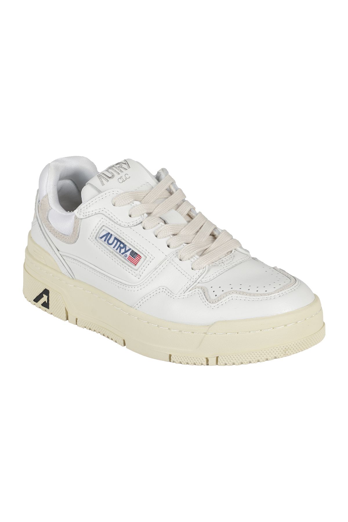 - Clc Low Women Sneakers- Autry- white color- beige suede inserts- leather upper- high rubber sole- round toe- cotton laces- side logo