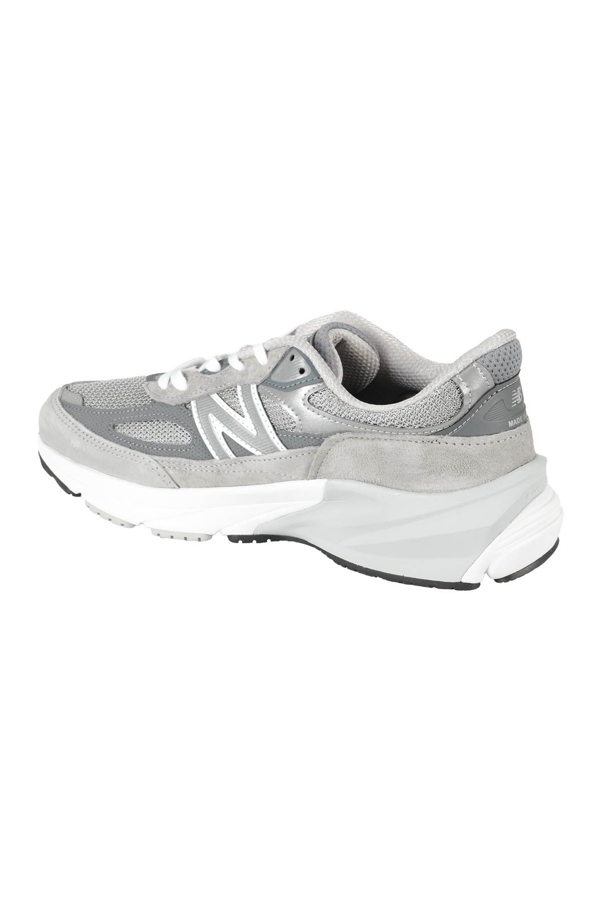 New Balance sneakers in grey, model 990 with suede and fabric upper with side logo, round toe, lace-up fastening, rubber sole.