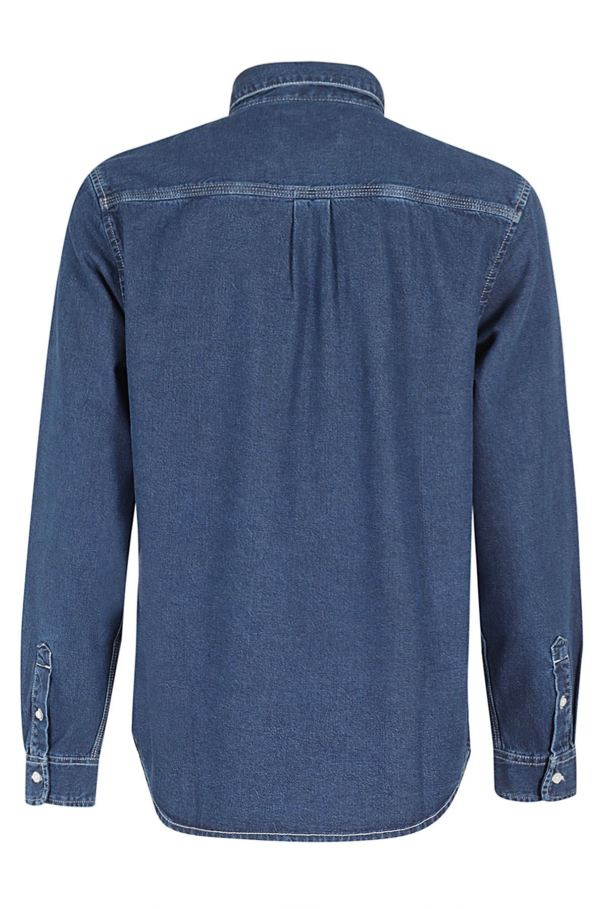 - Weldon Shirt - Carhartt WIP - Blue color - Cotton denim fabric - Button down collar - Long sleeve with cuff and button - Contrast embroidered chest logo - Front button fastening - Relaxed fit