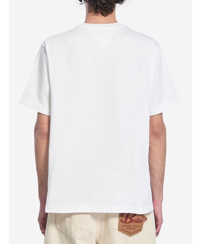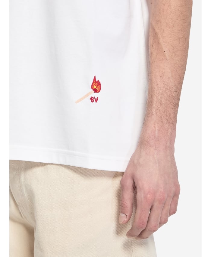 White Pima cotton jersey short-sleeve crewneck t-shirt. It features an embroidered matchstick and BV logo on the front and a ribbed crewneck. Regular