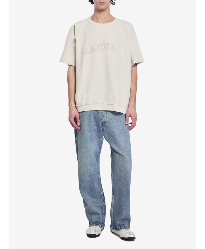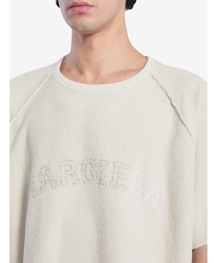 Short-sleeve crewneck sweatshirt in white cotton with an inside-out effect. It features an inside-out logo on the chest, short sleeves with raw