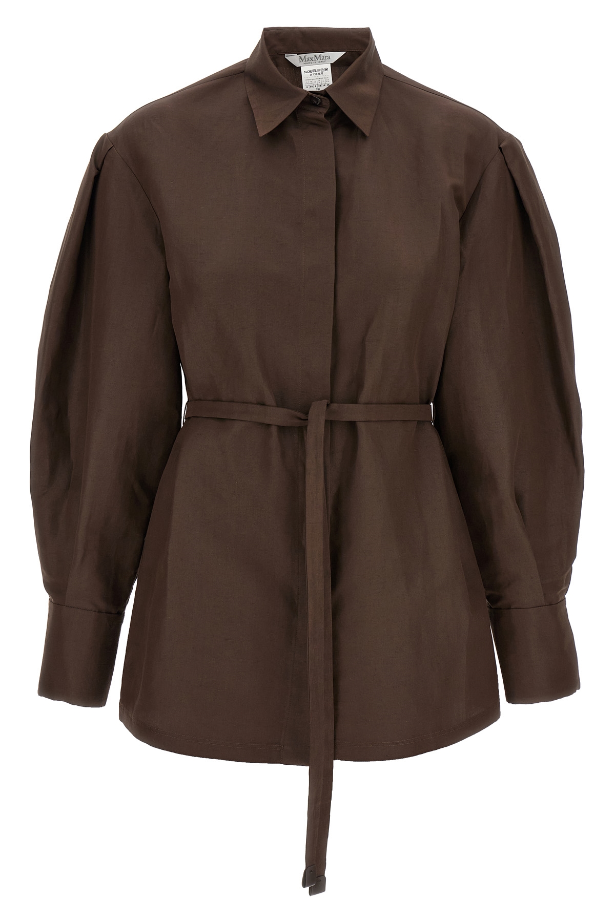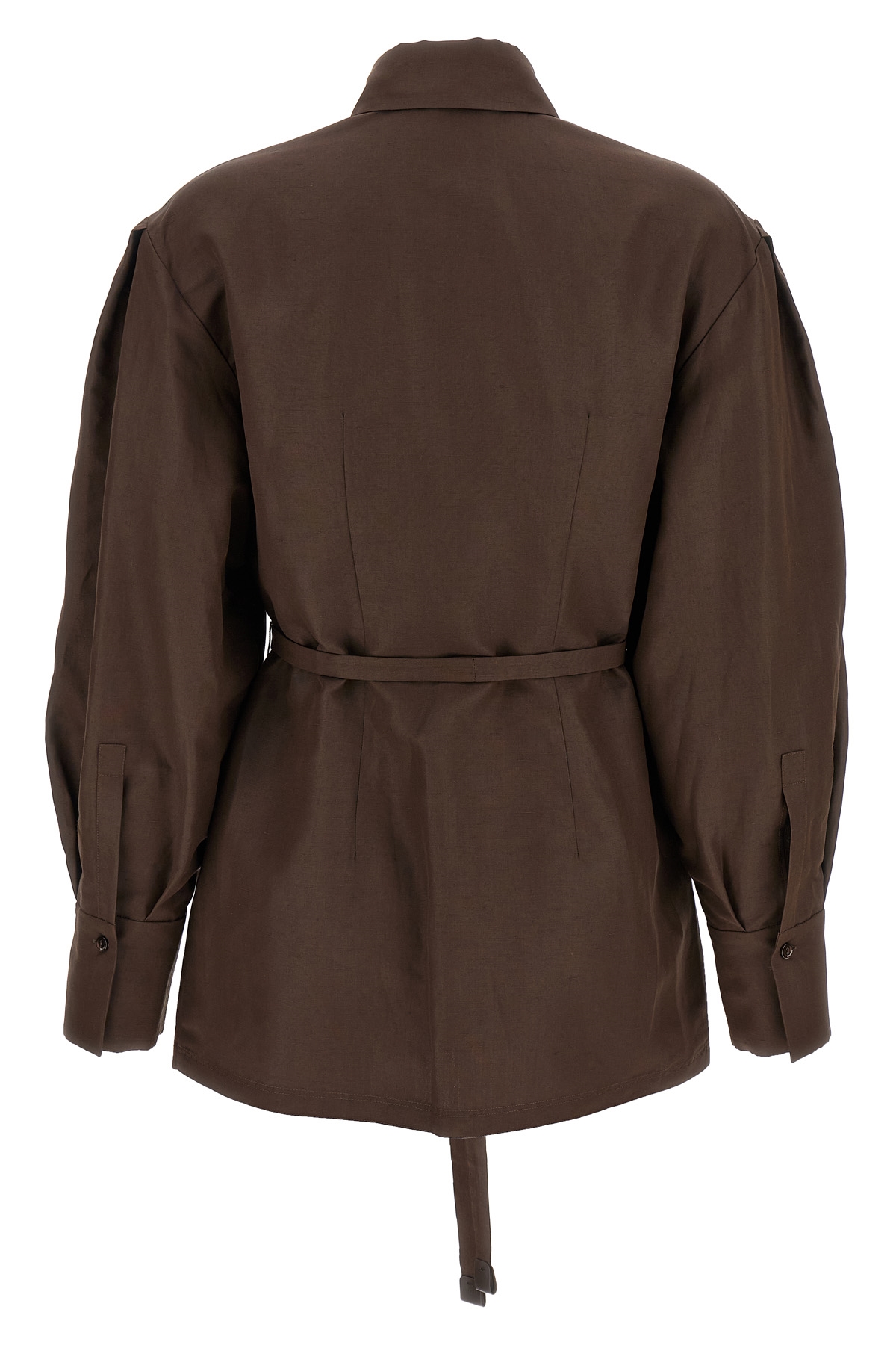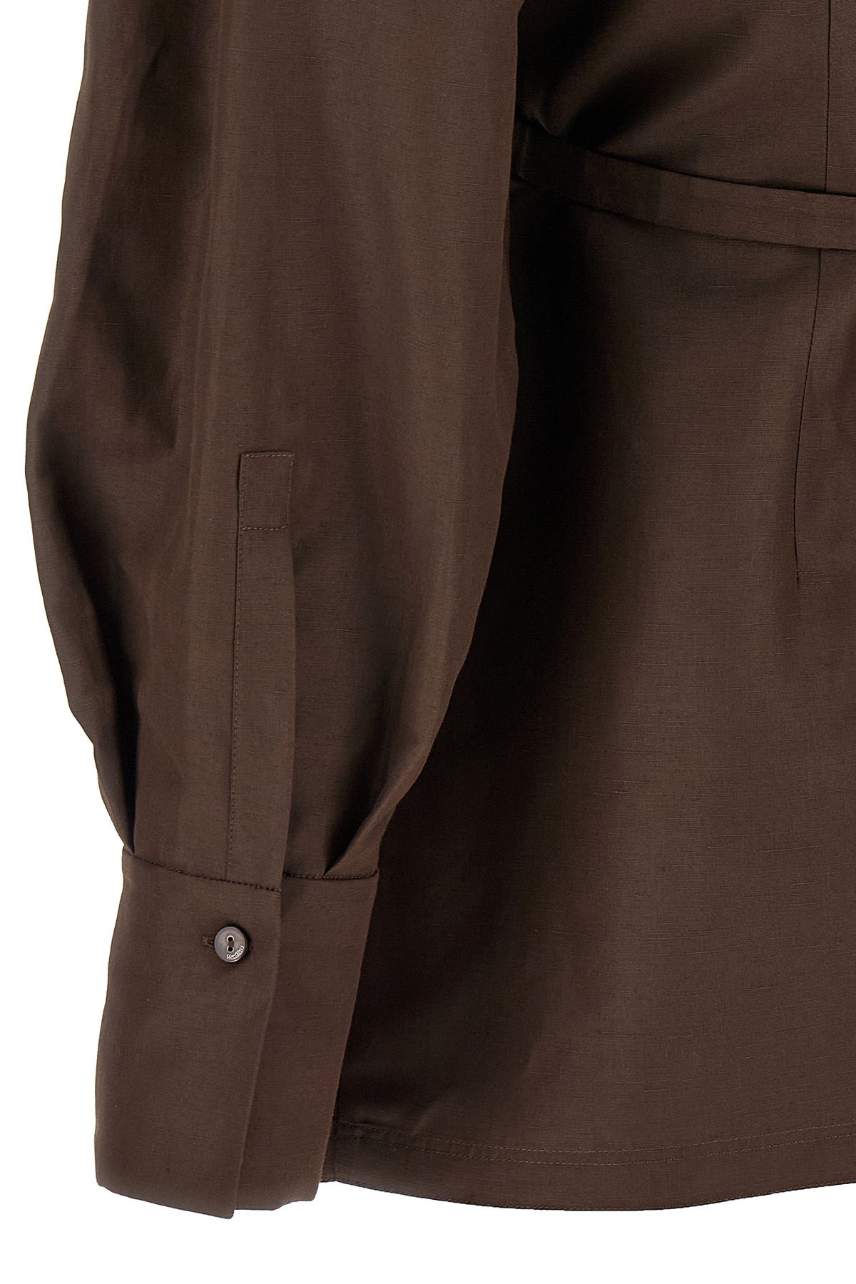 'Affari' shirt in linen and silk blend with front button closure, long wide sleeves with cuffs, removable belt.