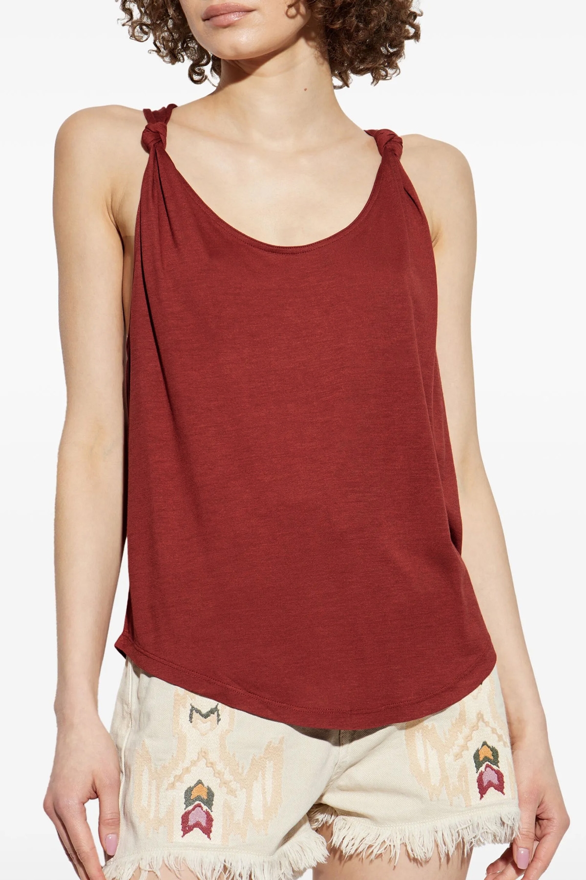 'Elody' fluid viscose jersey top with knot detail on the front and back, wide round neckline.