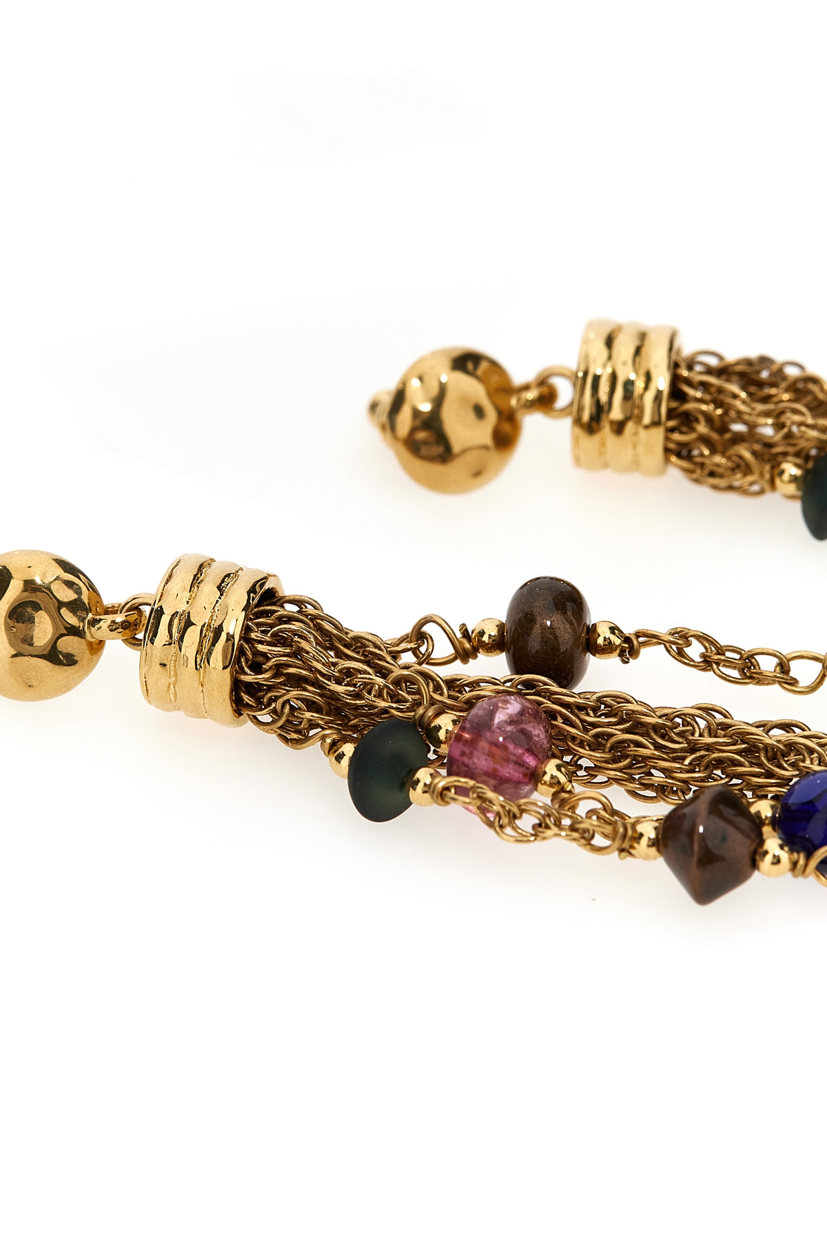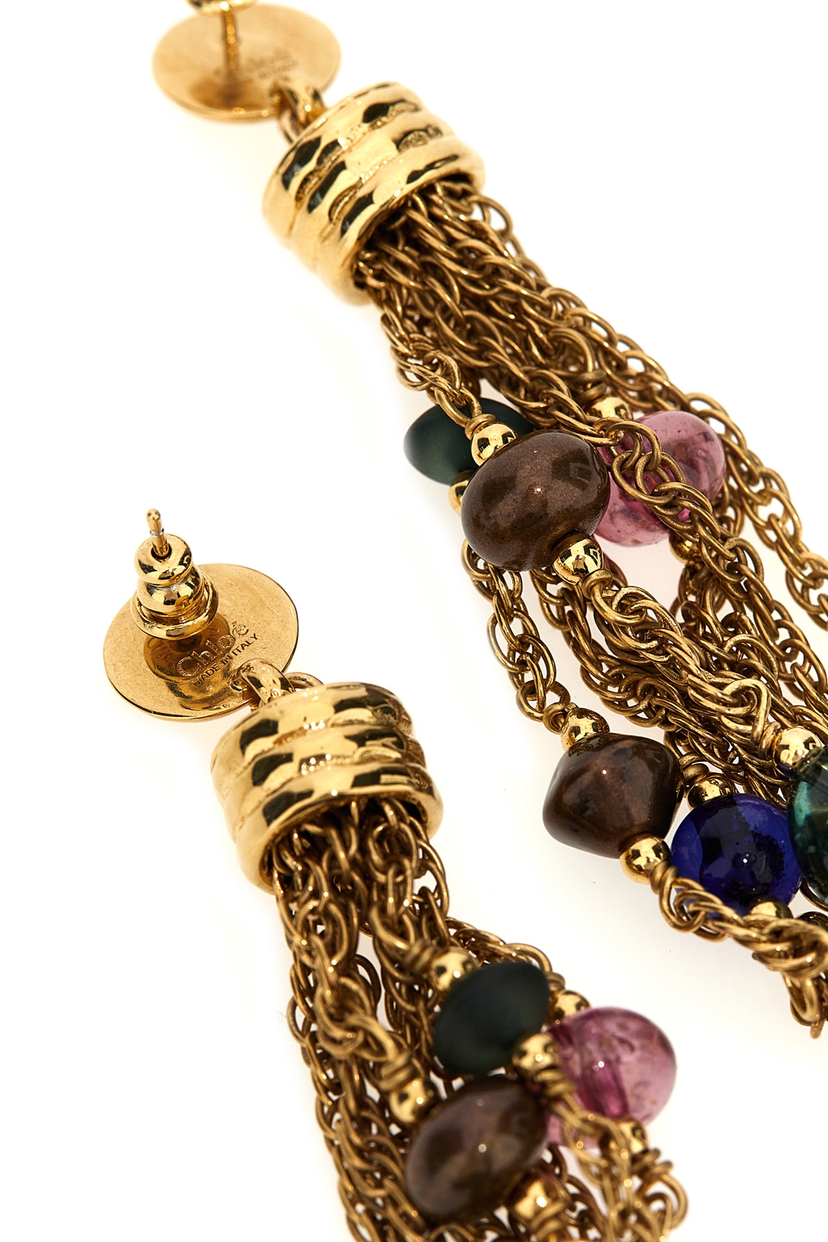 'Chloe Pompoms' earrings in Vintage Gold brass synthetic pearls and crystal glass, butterfly clasp. NON-RETURNABLE PRODUCT