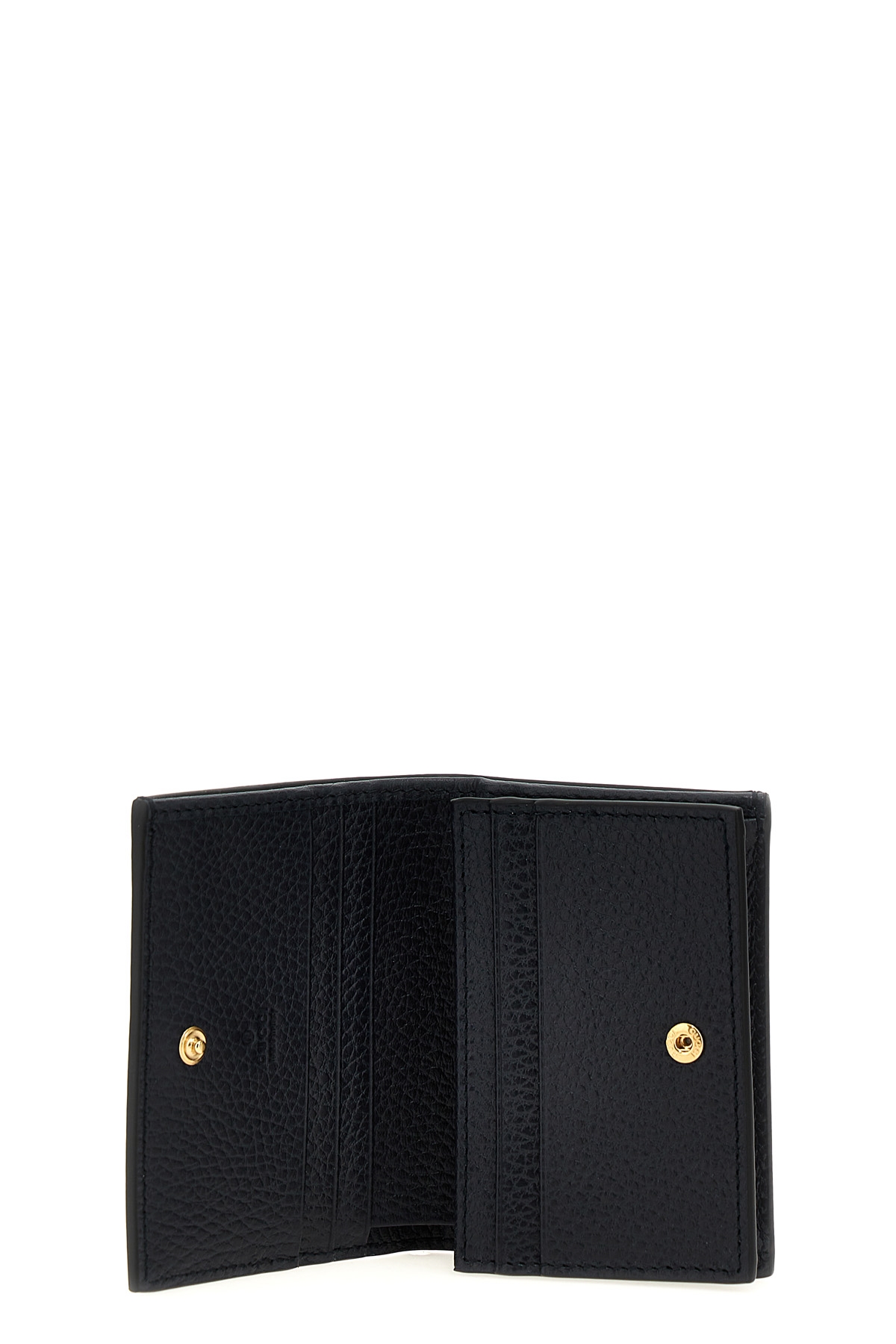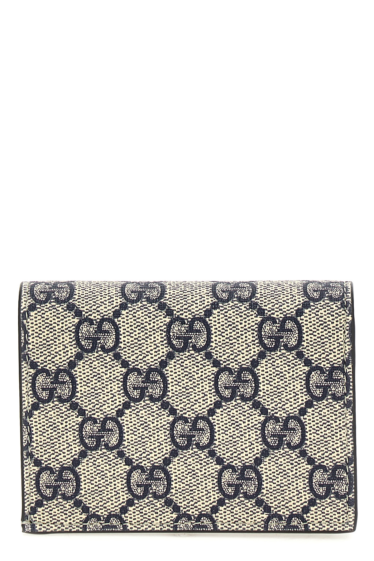 'GG Marmont' leather and GG Supreme fabric card holder with front metal logo, button closure.