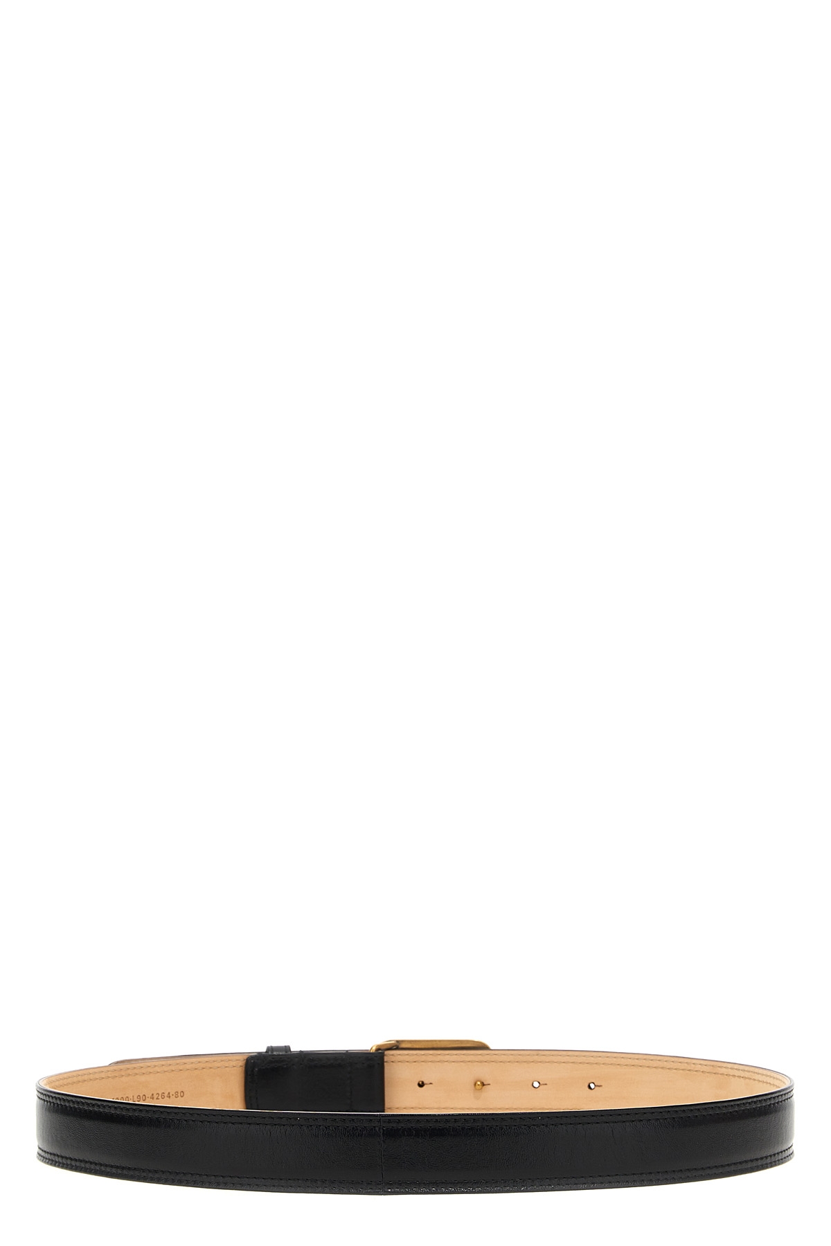 'BB Soft' Peach lambskin belt with antiqued metal logo buckle.