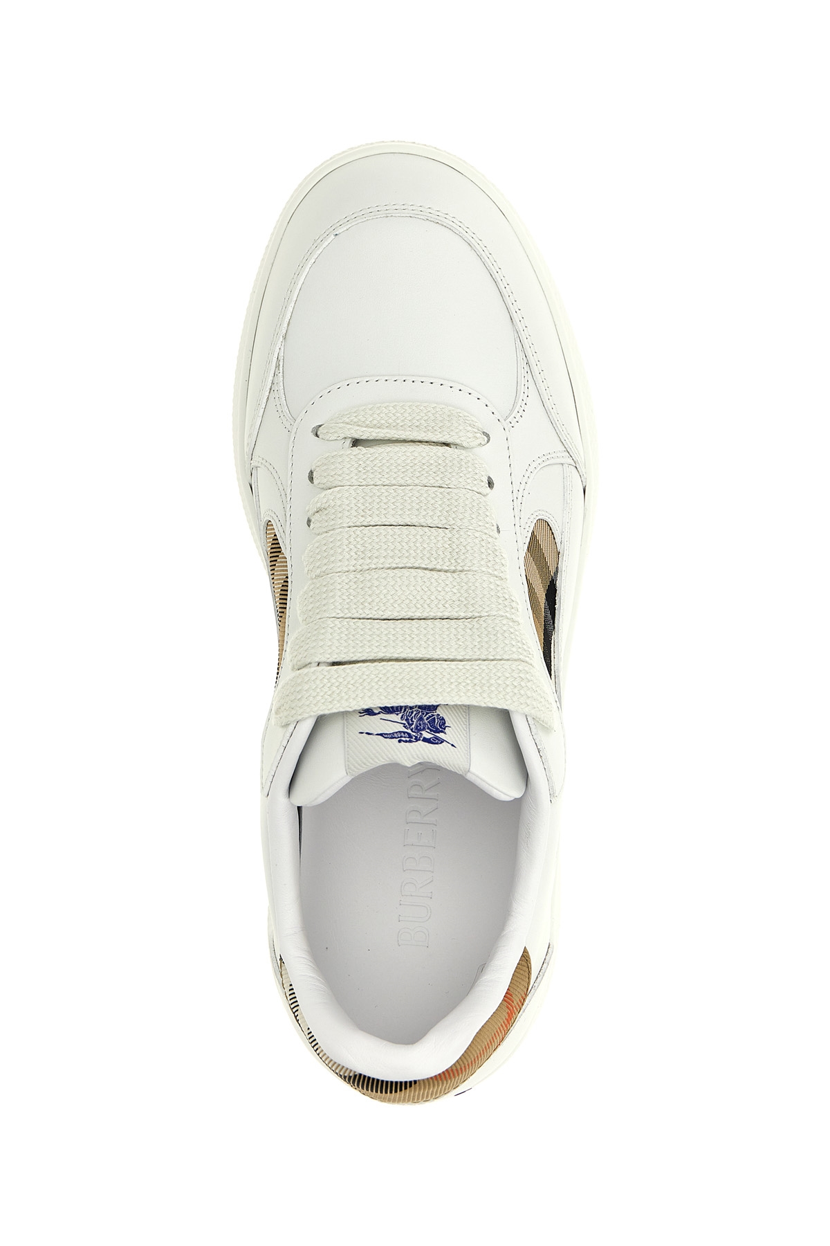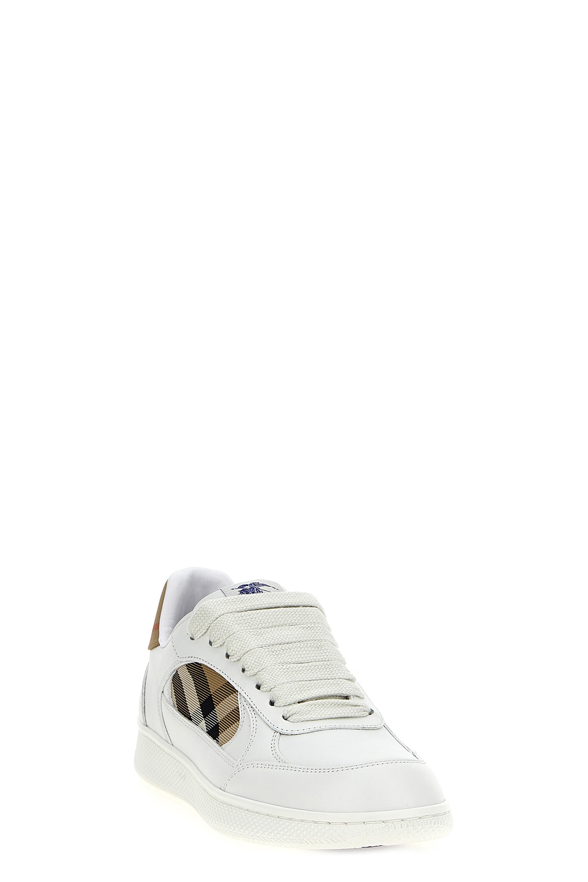 'Terrace' leather sneakers with check print cotton blend twill details, lace-up closure, rubber sole.