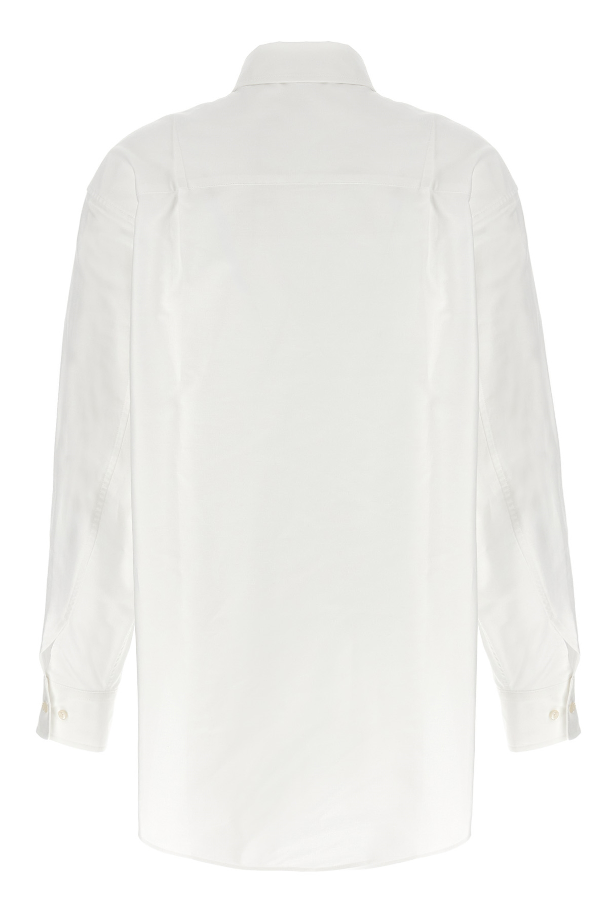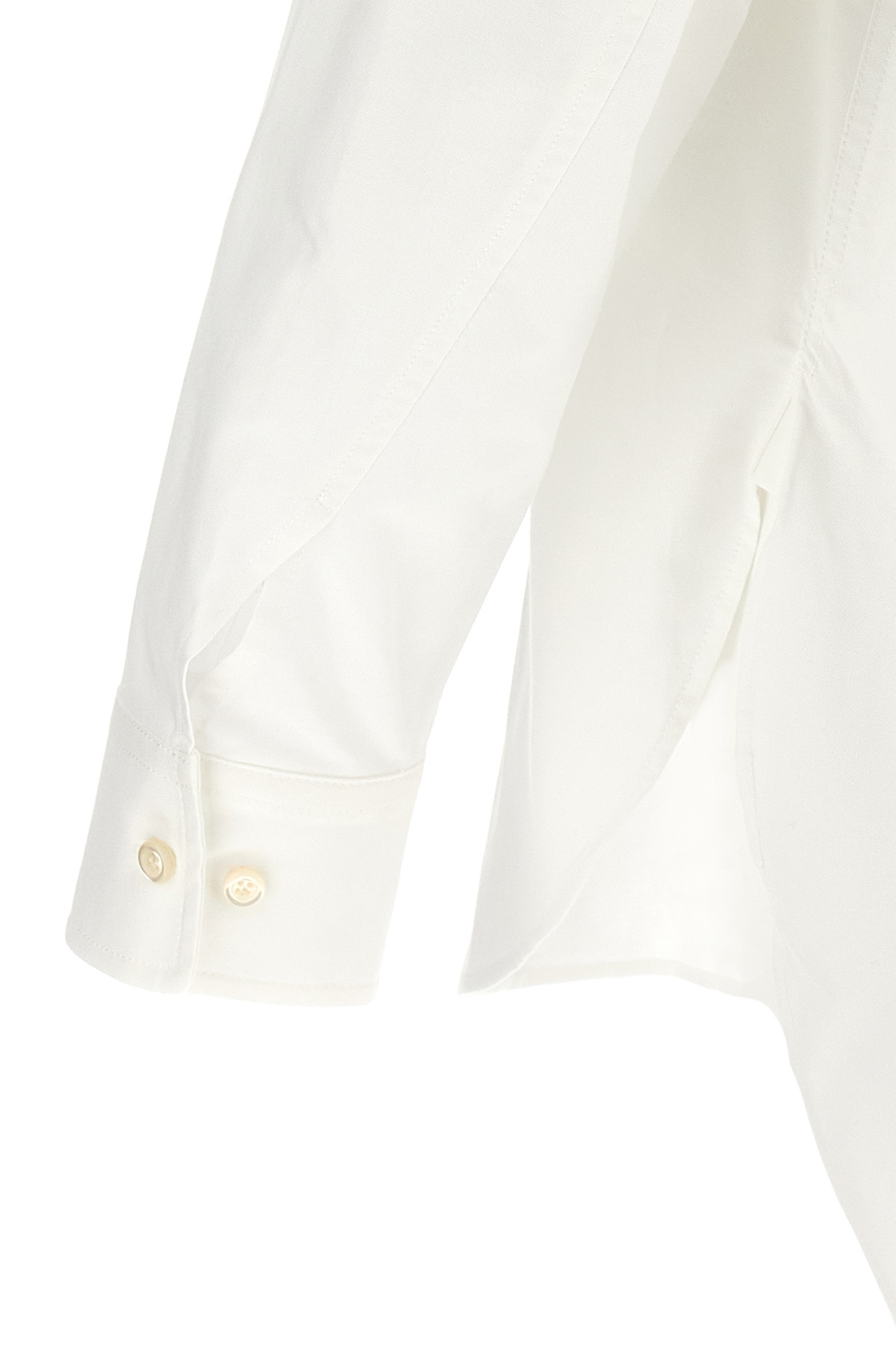 'Georgiana' Oxford cotton blend shirt, breast pocket, front button closure, back pincers, long cuffed sleeves, side slits.