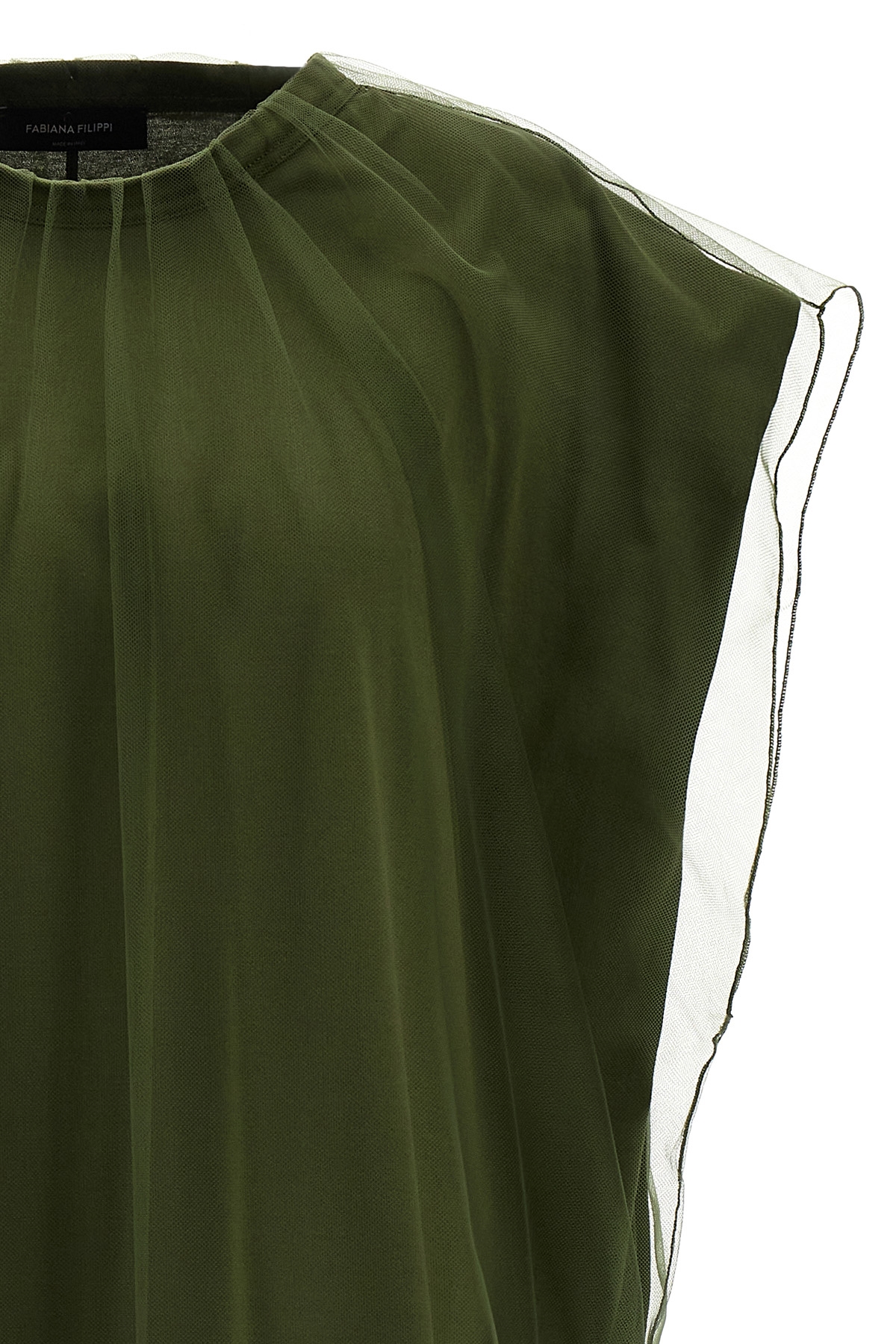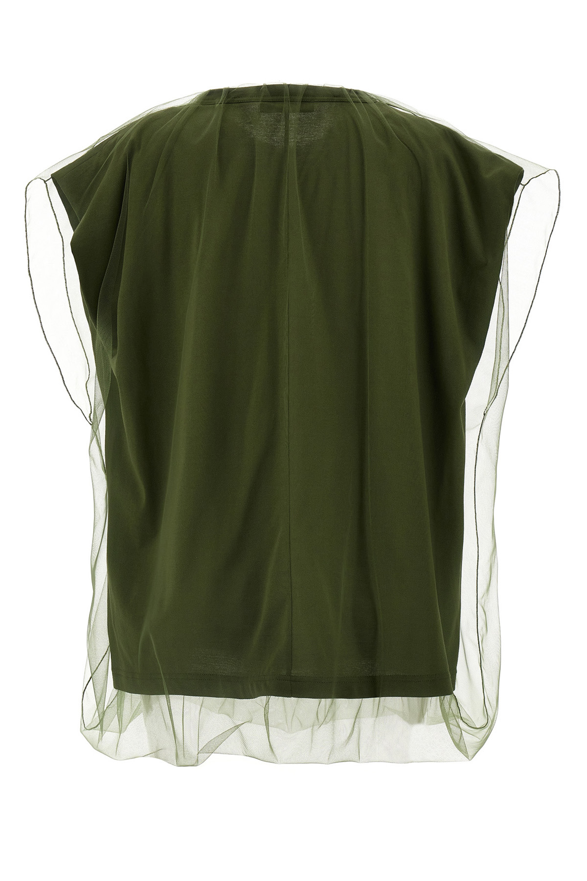 Cotton jersey T-shirt with overlapping tulle layer, cape sleeves, crew neck.