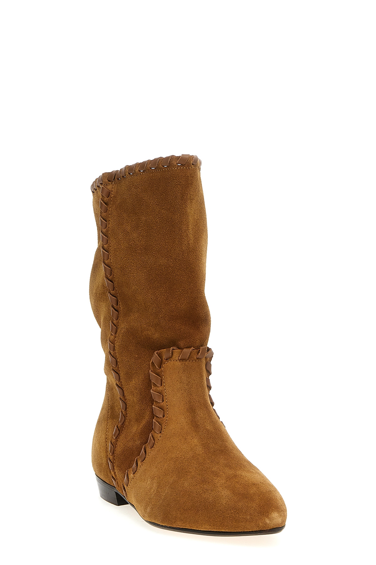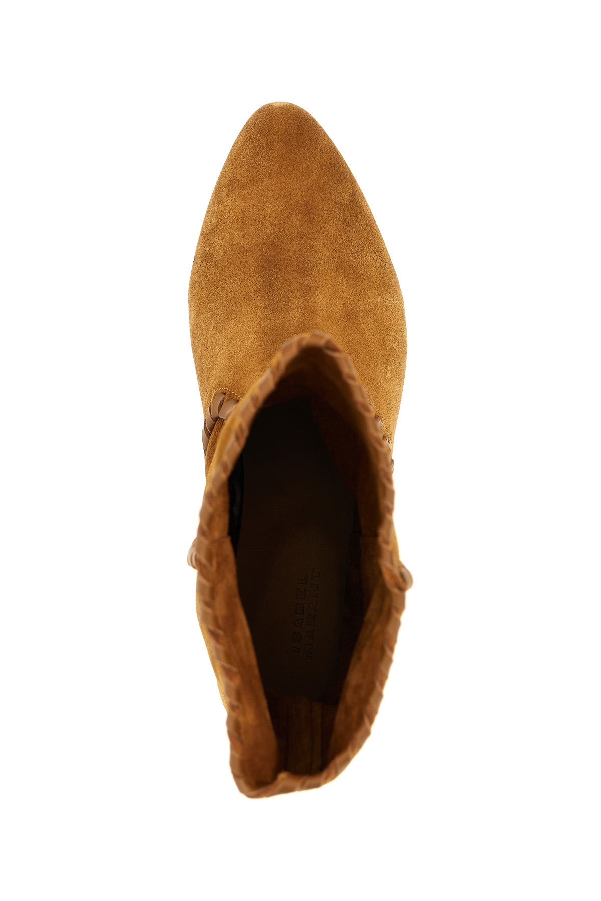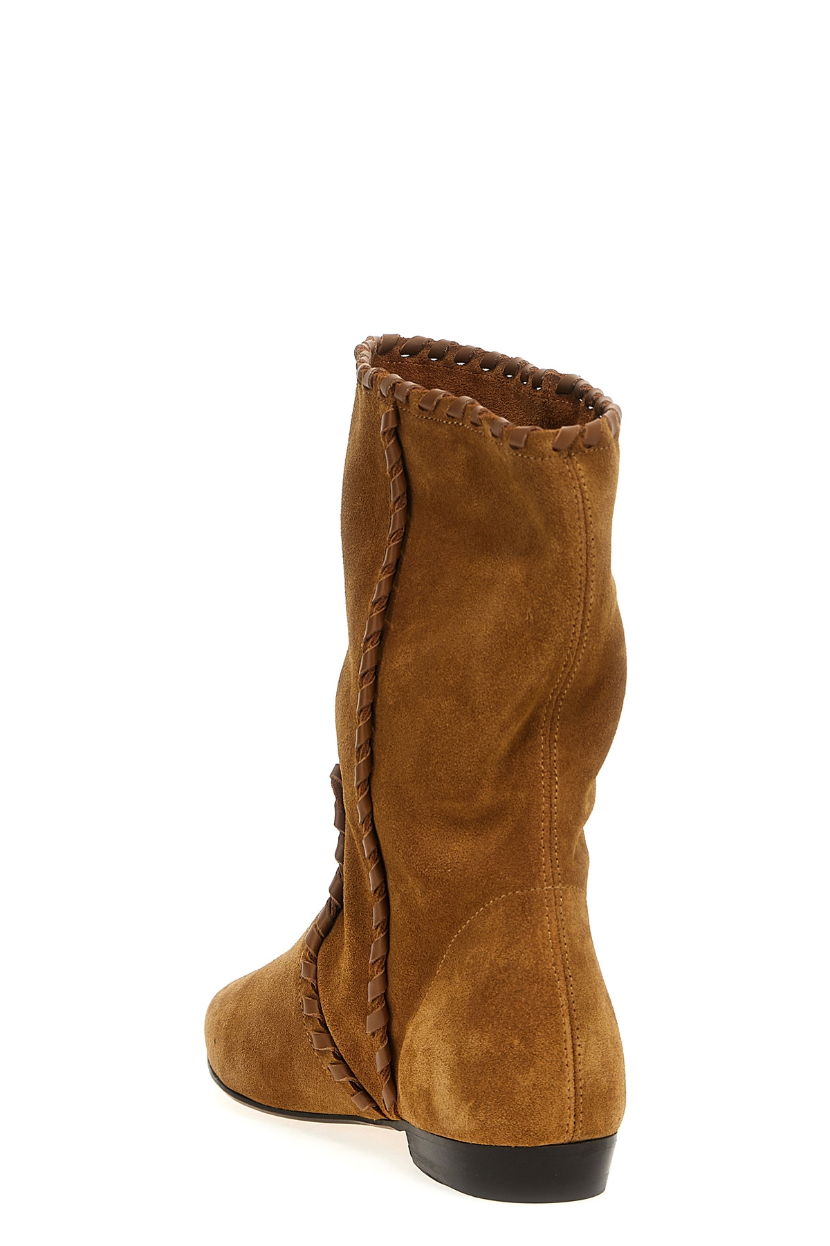 'Staeni' suede ankle boots with leather stitching, soft leg, elongated toe, leather sole.
