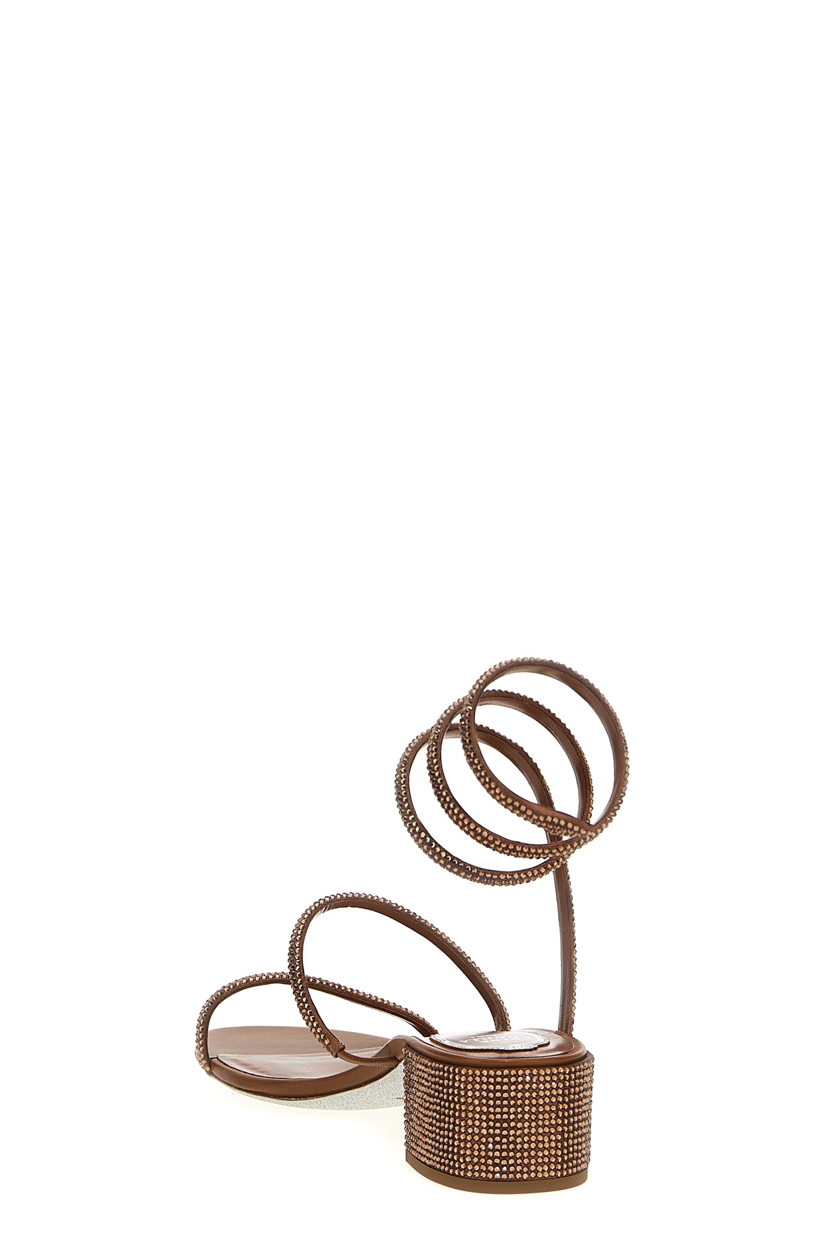 'Cleo' leather sandals with all-over rhinestone applique, ankle wrap band, chunky heel, stardust sole.